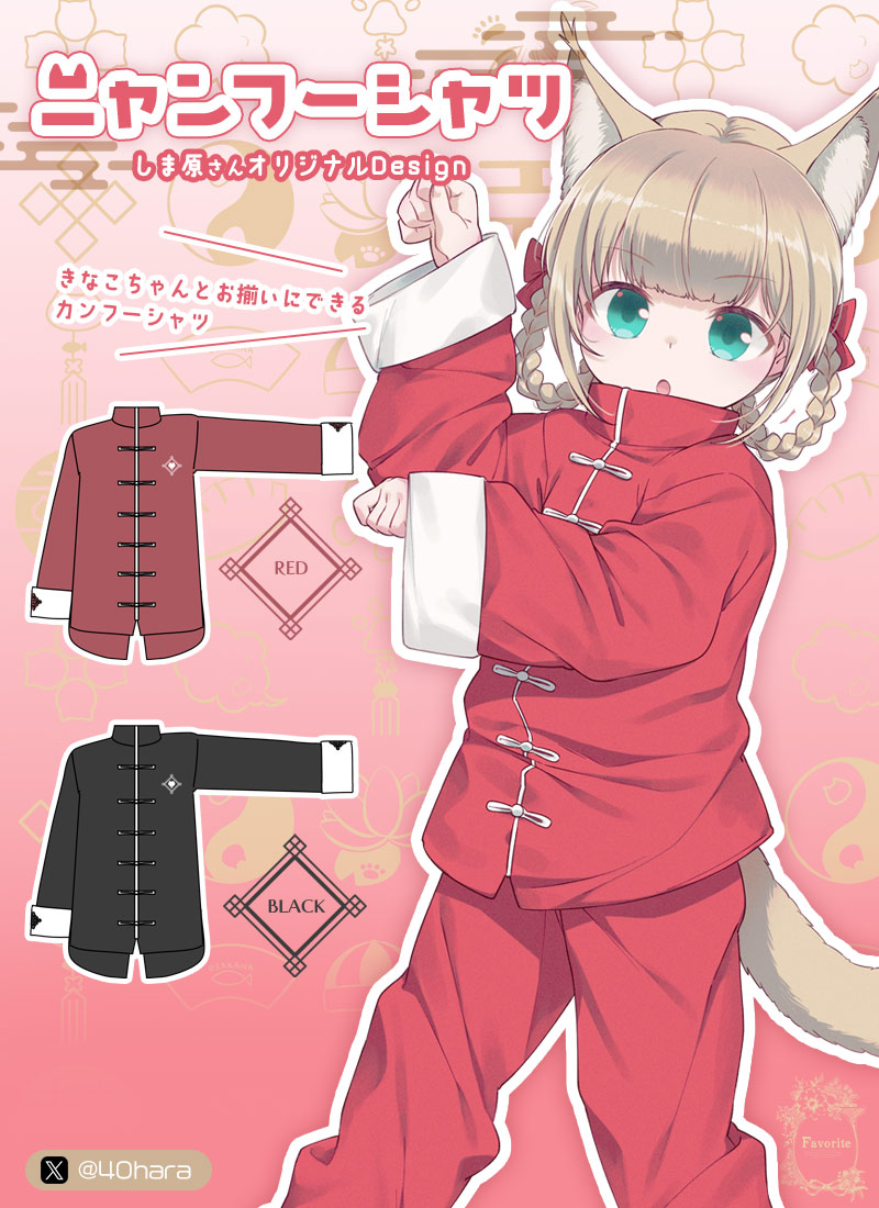 【予約商品】チャイナ 中華 ユニセックス 男女兼用 オーバーサイズ 猫 尻尾 モード サブカル*Favorite*きなこちゃんコラボグッズ ニャンフーシャツ【2025年10月下旬予約開始】【生産確定】