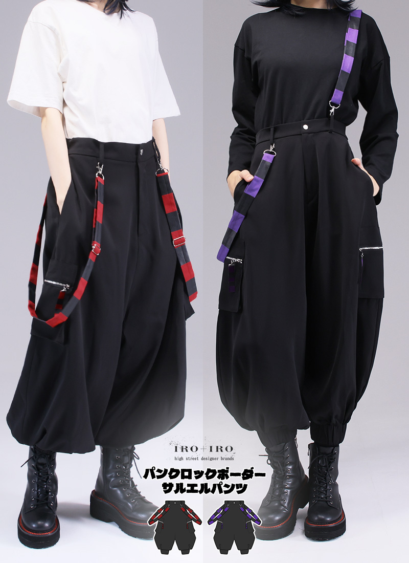 【最短即日出荷】ユニセックス サスペンダー ボトムス*Favorite*パンクロックボーダーサルエルパンツ【2025年5月下旬予約開始】