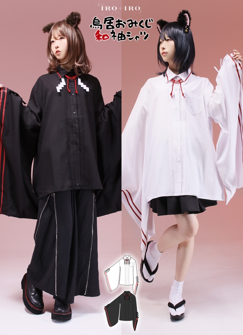 【最短即日出荷】和洋折衷 鳥居 紙垂 リボン モノクロ ユニセックス 水引 和紐*Favoriteオリジナル*鳥居おみくじ和袖シャツ【2025年5月中旬予約開始】商品コード:ffai1569