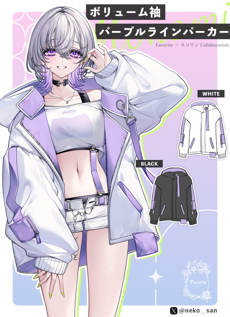 パーカー 羽織り スポーティ ライン チャコール グレー カジュアル 男女兼用 ユニセックス*Favorite*水瀬ここさんコラボグッズ バックプリントジャージパーカー【2025年9月下旬予約開始】