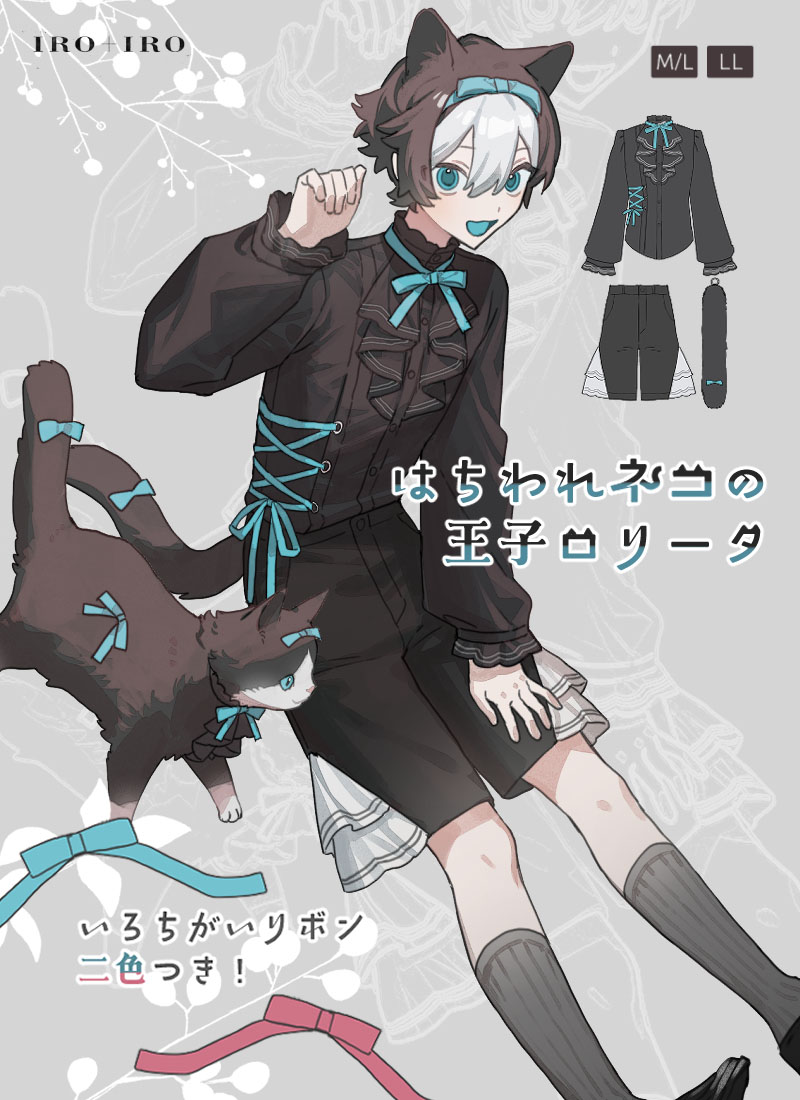セットアップ 少年装 ねこ ロリータ 皇子 ブラウス ハーフパンツ*Favorite*装飾リボン2色付属♪はちわれ猫の王子ロリータ【2025年10月上旬予約開始】