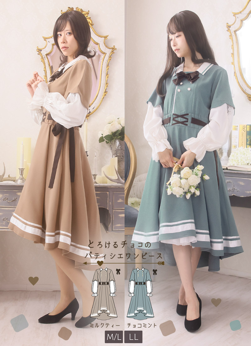 【最短即日出荷】ワンピース フィッシュテール チョコ 紅茶 ミント お菓子 リボン たかみん*Favorite*とろけるチョコのパティシエワンピース【2025年2月中旬予約開始】
