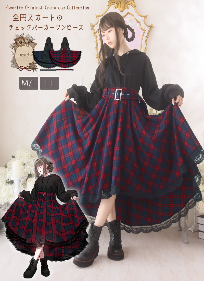 【最短即日出荷】ワンピース フィッシュテール シンプル 全円 タータン チェック ドッキング たかみん*Favorite*全円スカートのチェックパーカーワンピース【2025年9月上旬予約開始】