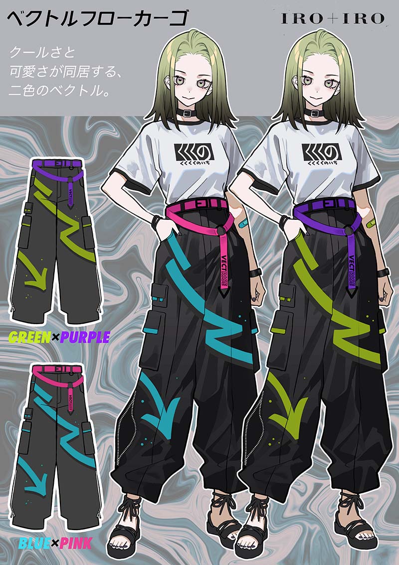 【予約数集まり次第生産】バイカラー ネオン サイバー 忍 ユニセックス カーゴパンツ ベルト ストリート*Favorite*ベクトルフローカーゴパンツ【2025年10月下旬予約開始】【生産未確定予約】