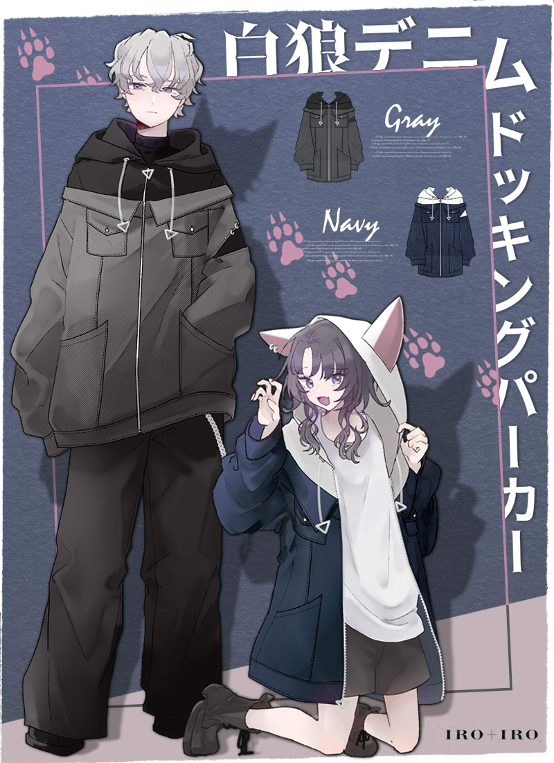 【予約商品】パーカー ユニセックス ジャケット オオカミ 重ね着風 まえだ*Favoriteオリジナル*白狼デニムドッキングパーカー【2025年1月下旬予約開始】【生産確定】商品コード:101085