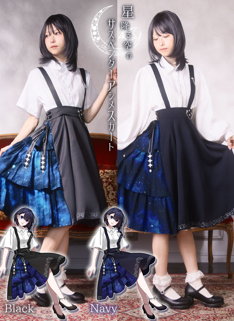 【最短即日出荷】スカート ボトムス ミディアム丈 アシンメトリー フリル 星 たかみん*Favorite*星降る空のサスペンダースカート【2025年5月中旬予約開始】