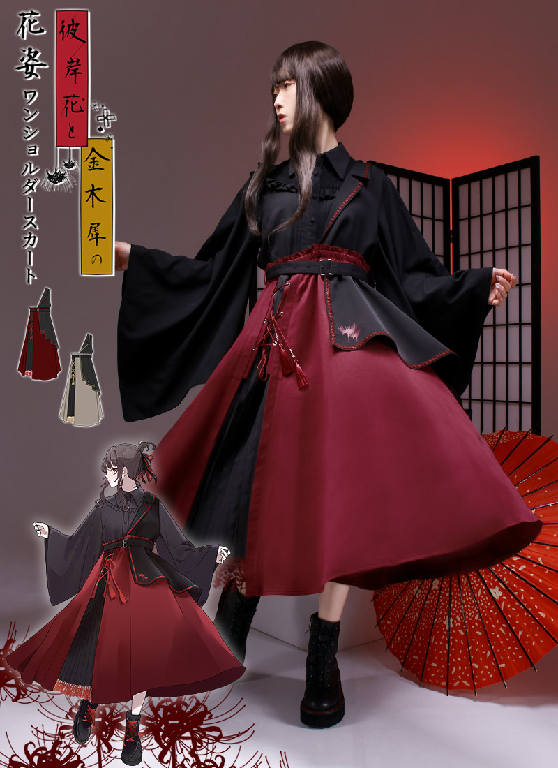 【最短即日出荷】リバーシブル ユニセックス 彼岸花 モダン モード ベルト 蝶*Favoriteオリジナル*彼岸花レイヤードスカート【2025年5月下旬予約開始】商品コード:fm055