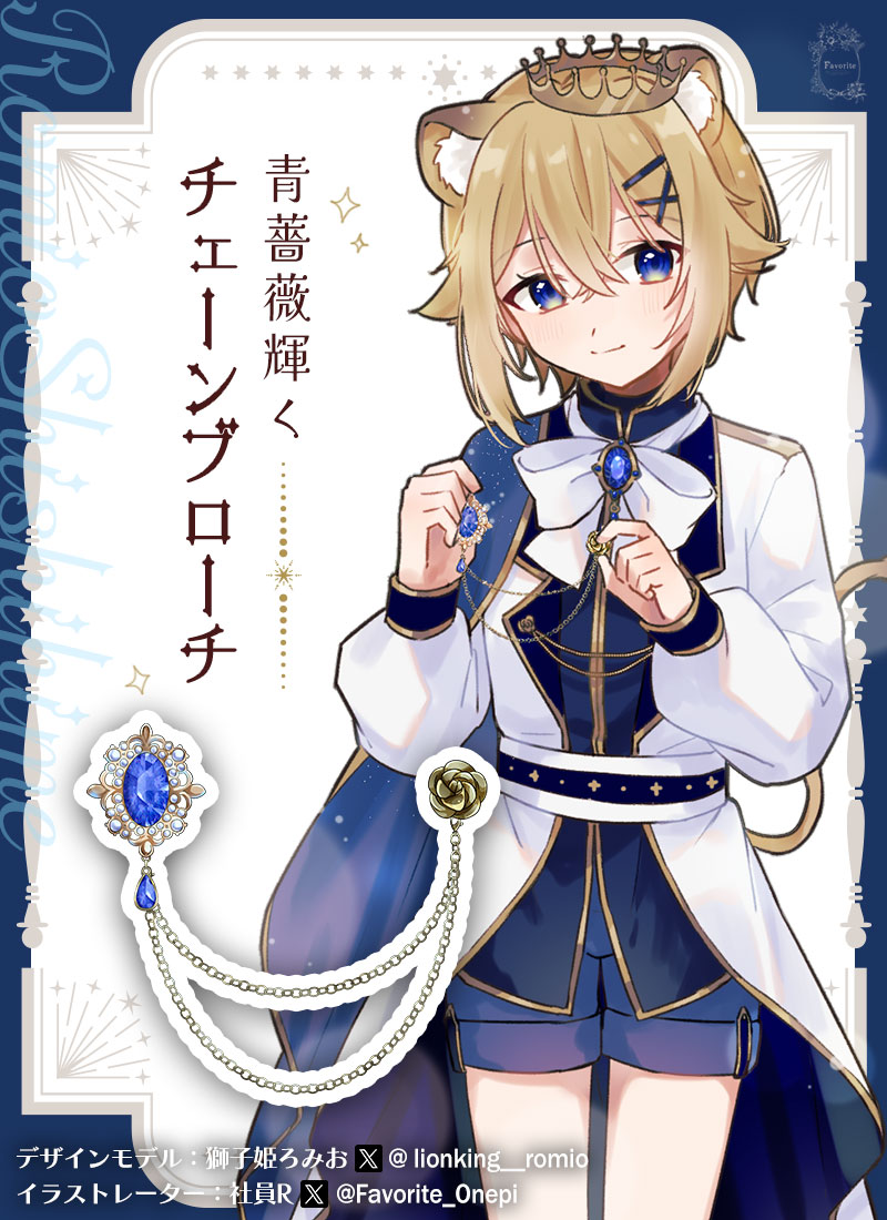 【予約商品】ネクタイピン チャーム ラペルピン 宝石 バラ*Favorite*獅子姫ろみおさんコラボグッズ 青薔薇輝くチェーンブローチ【2025年10月上旬予約開始】【生産確定】