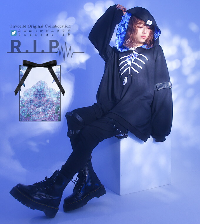 【最短即日出荷】パーカー ユニセックス 紫陽花 肋骨 喪服 死装束 イメージ 便箋*Favoriteコラボ*左雨はっかさんコラボグッズ 喪に服すパーカー商品コード:ffcohacca
