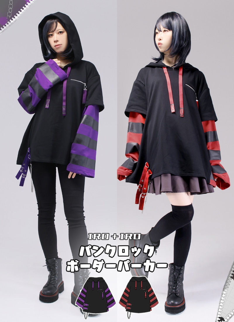 【最短即日出荷】ユニセックス 男女共用 オーバーサイズ チェーン 袖2way 半袖 長袖 ゴシック 地雷*Favorite*パンクロックボーダーパーカー【2025年2月中旬予約開始】