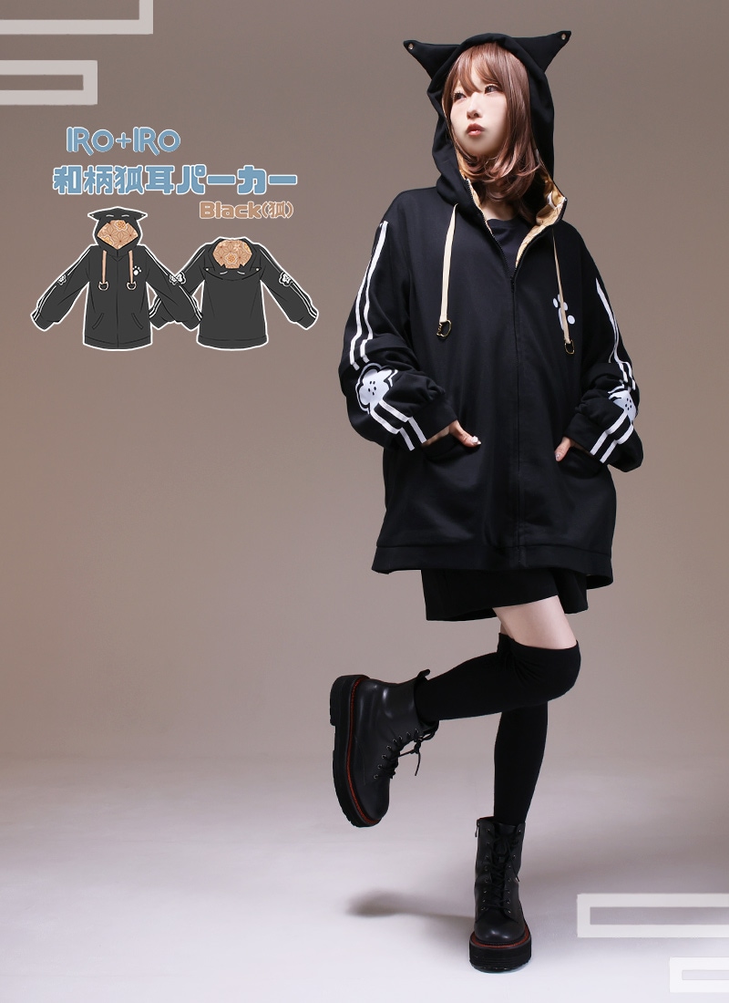 【予約商品】パーカー 半袖 長袖 和柄 キツネ 肉球 狐巳夜シュウ*Favorite*和柄狐耳パーカー【2025年9月上旬予約開始】【新作予約:1月下旬頃順次発送予定】