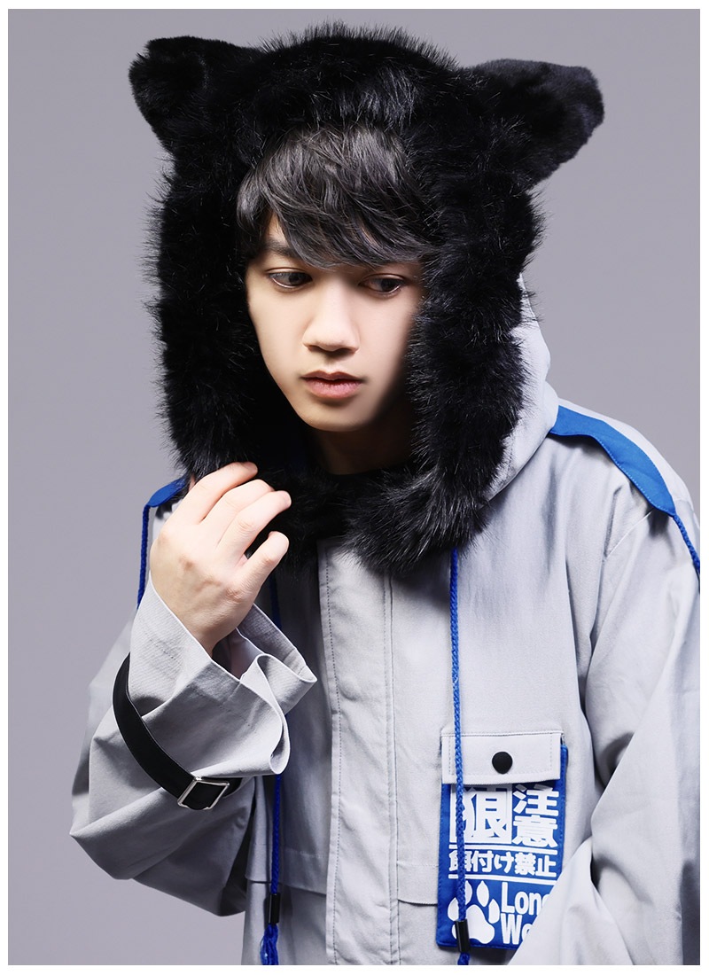 フードファーは毛足長めでもふっと感を。狼耳のファーは毛足短めでぬいぐるみ感を。