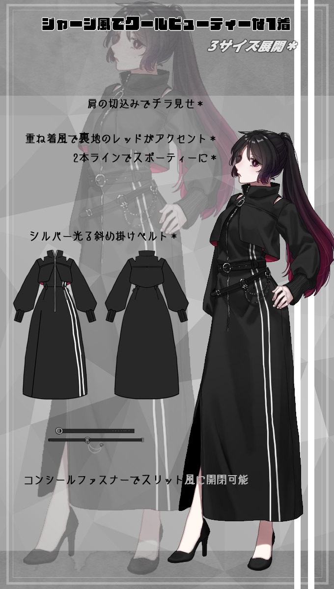 【M】肩幅37cm 身幅48cm 着丈117cm 袖丈64cm ウエスト40cm