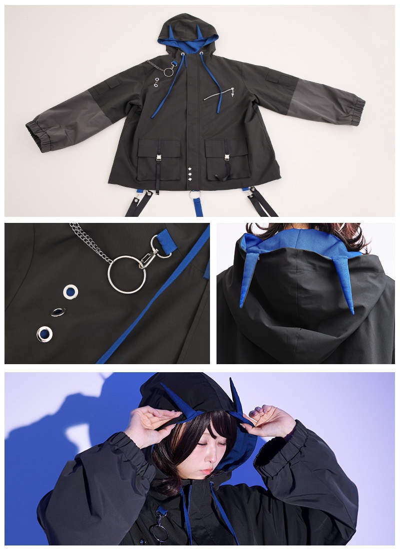 龍をモチーフしたアイテムでフードに龍の角と背中にしっぽをイメージしたストラップがつく