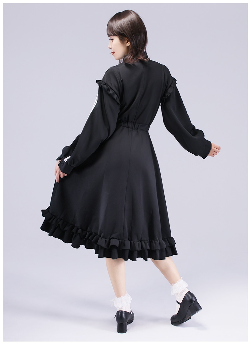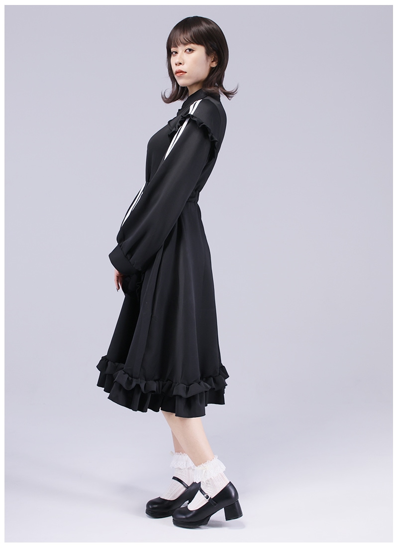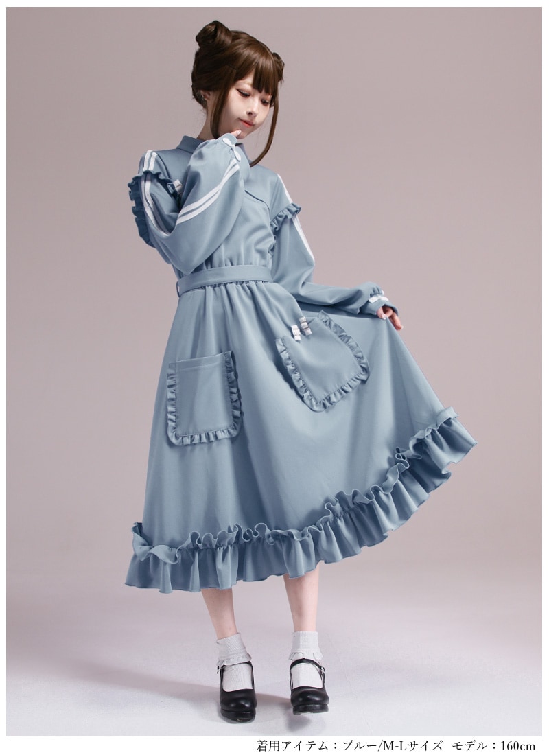 【M-L】肩幅37cm 身幅46cm 着丈108cm 袖丈64cm ウエスト33-43cm