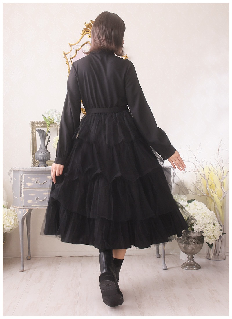 【M-L】肩幅39cm 身幅46cm 着丈116cm 袖丈63cm ウエスト33-45cm
