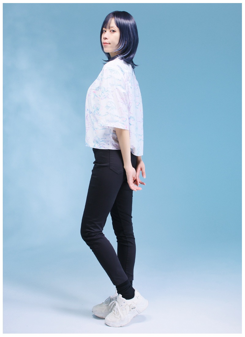 オープンカラーのショート丈シャツ