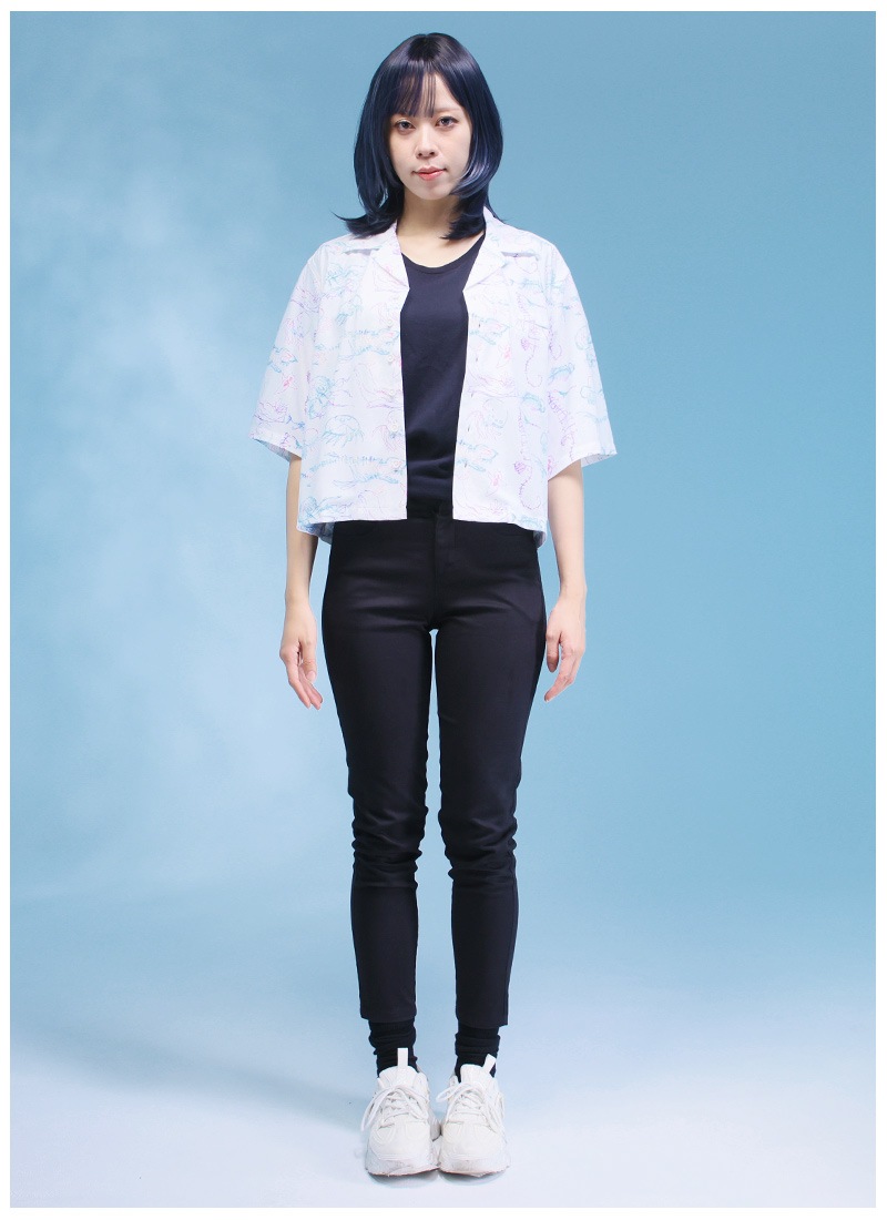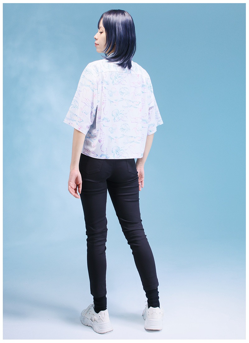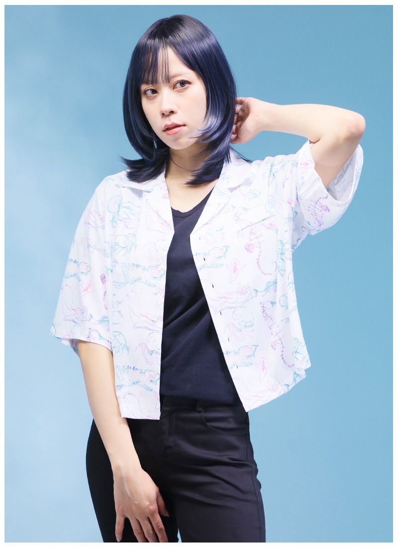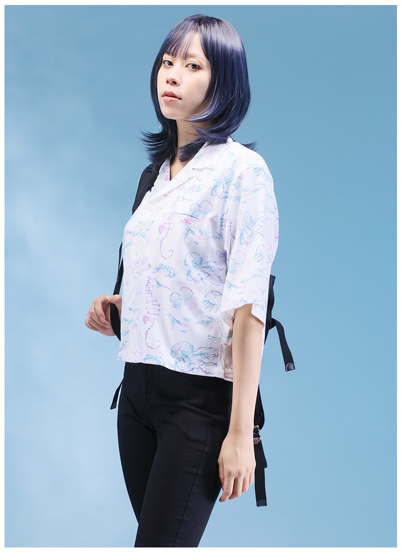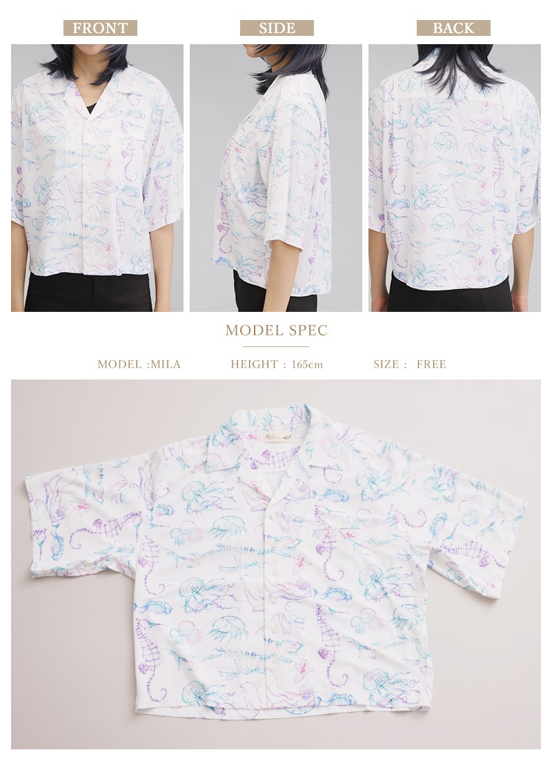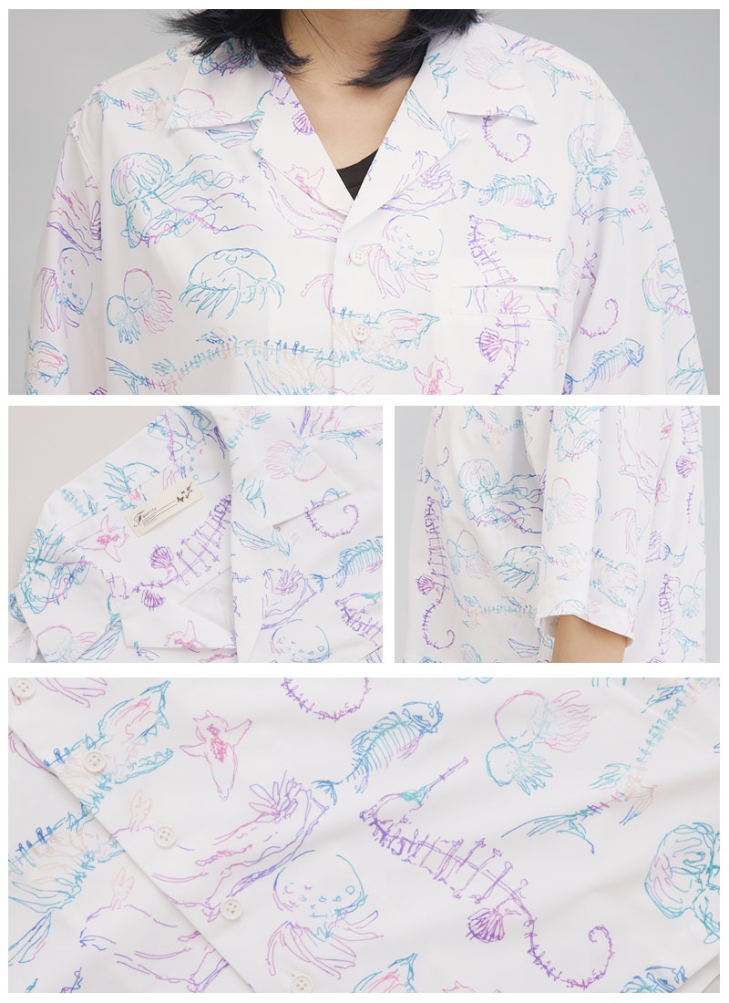 ビアンカ水族館念パス柄オープンカラーオーバーサイズシャツ
