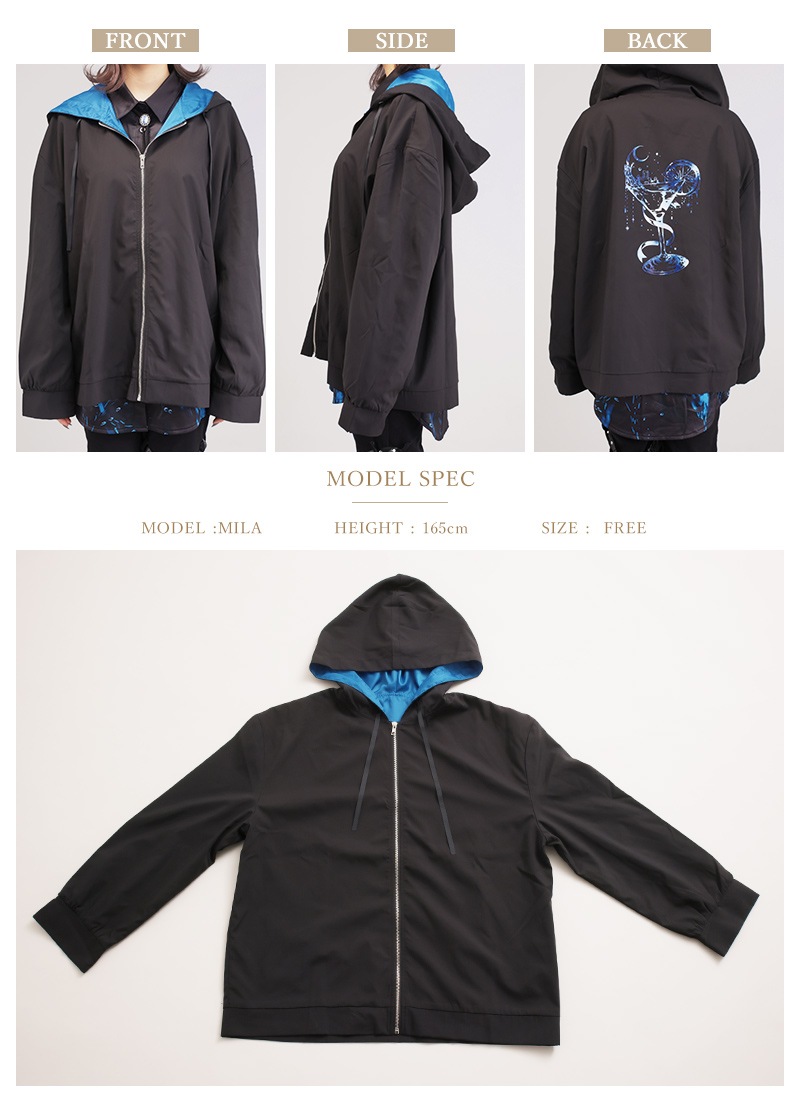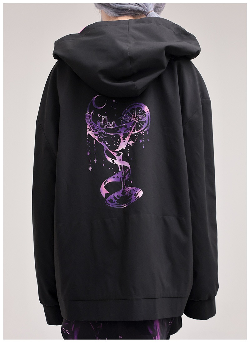 パーカーのバックにはグラスに注がれたカクテルがプリント