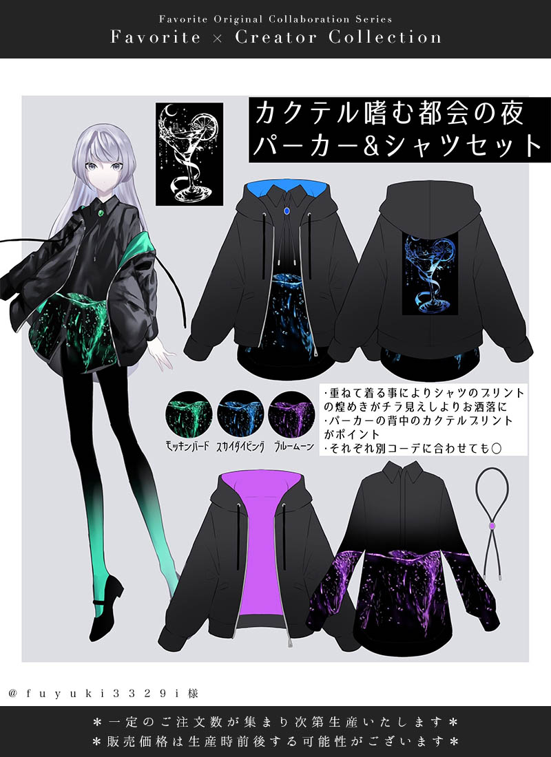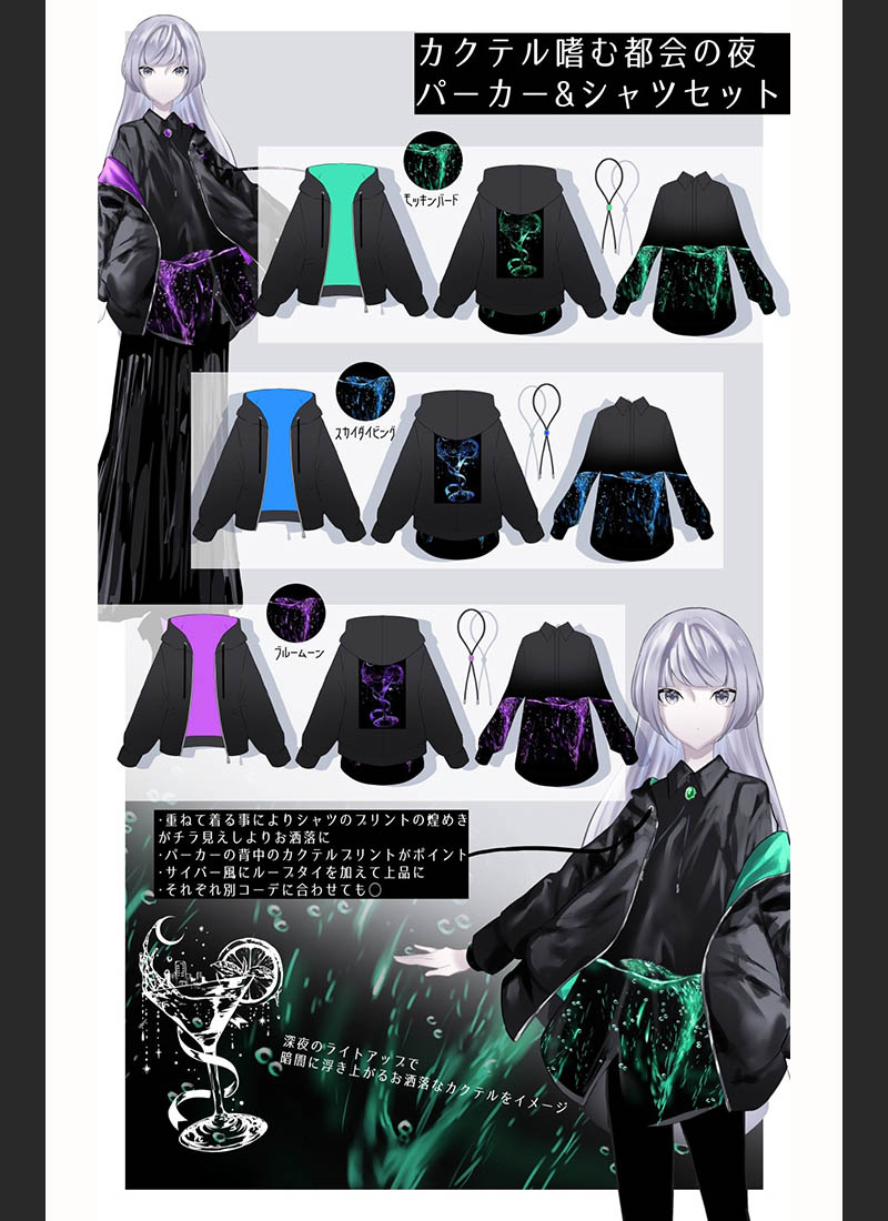 カクテル嗜む都会の夜 パーカー&シャツセット