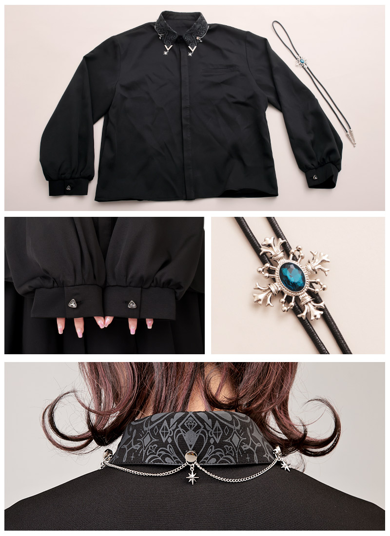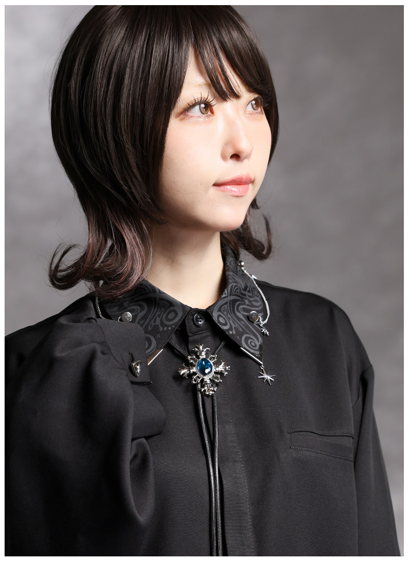 ・襟には星チャームやスタッズ、チェーン装飾など*