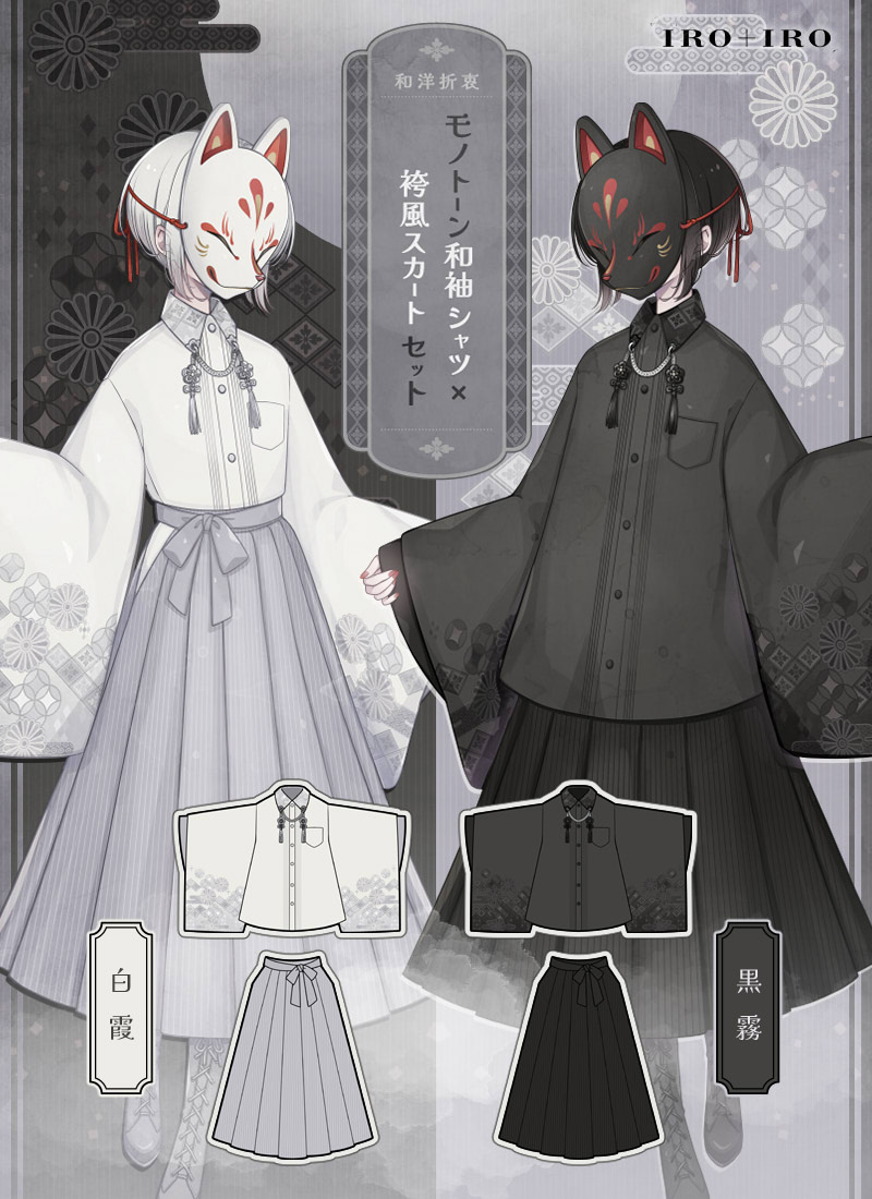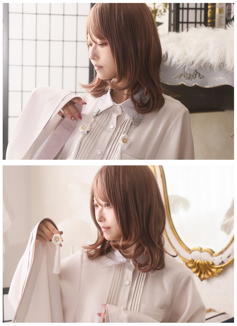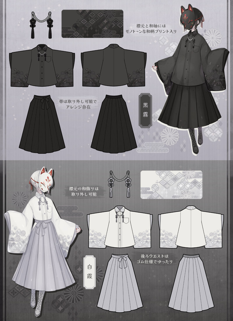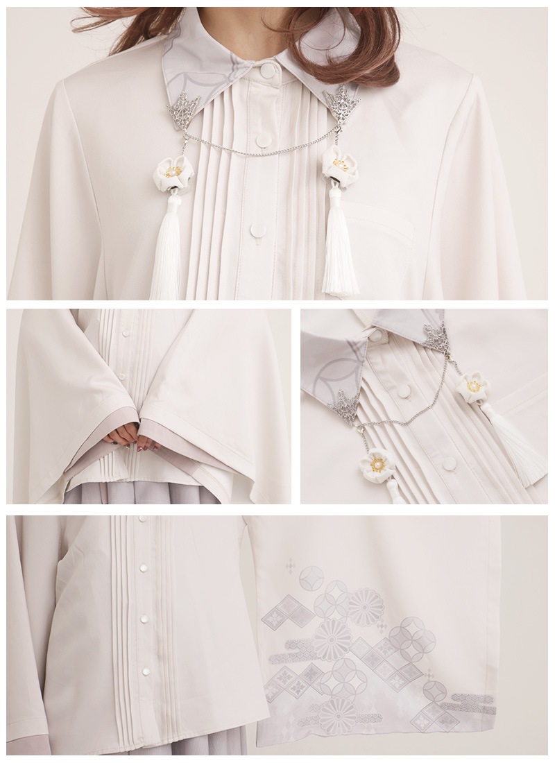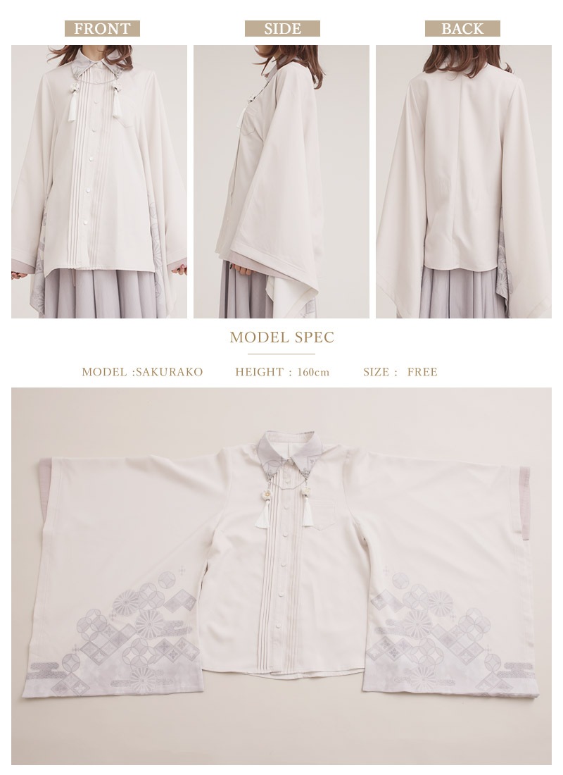 ・襟元と和袖にはモノトーンな和柄プリント入り