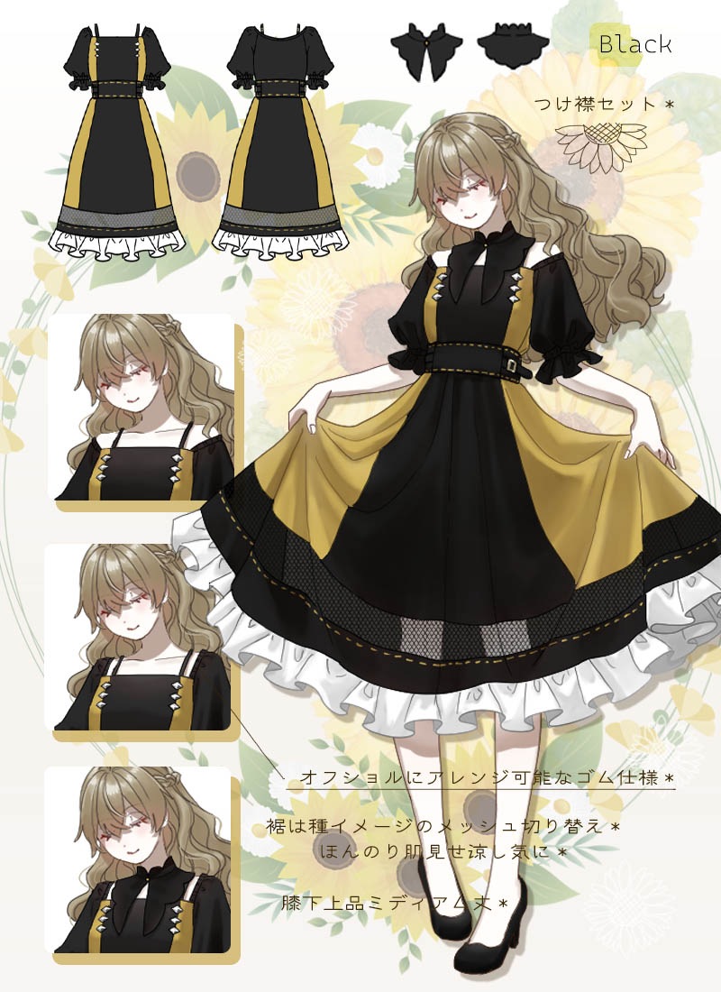 【M-L】身幅44cm 着丈110cm 袖丈33cm ウエスト33-38cm