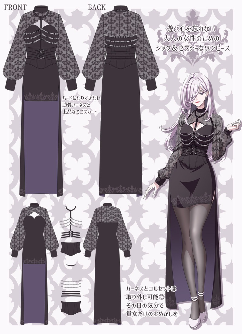 ハードになりすぎない肋骨ハーネスとロングテールで上品なミニスカート。