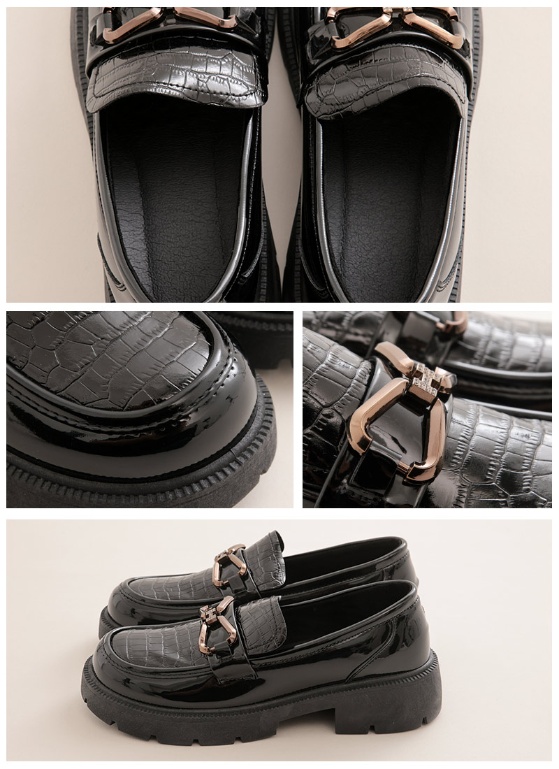 クロコダイル風の型押しのローファー