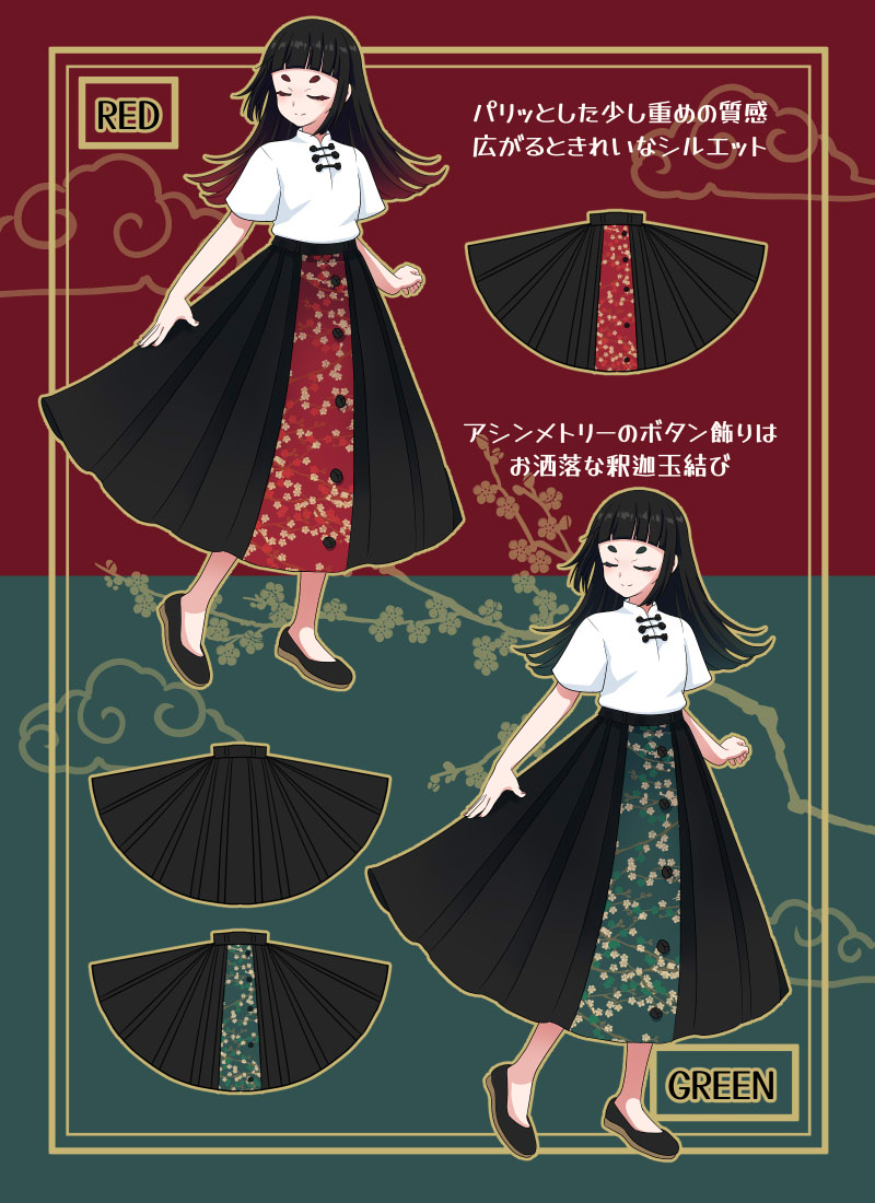 チャイナ風梅花柄ロングスカート
