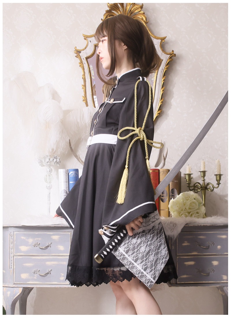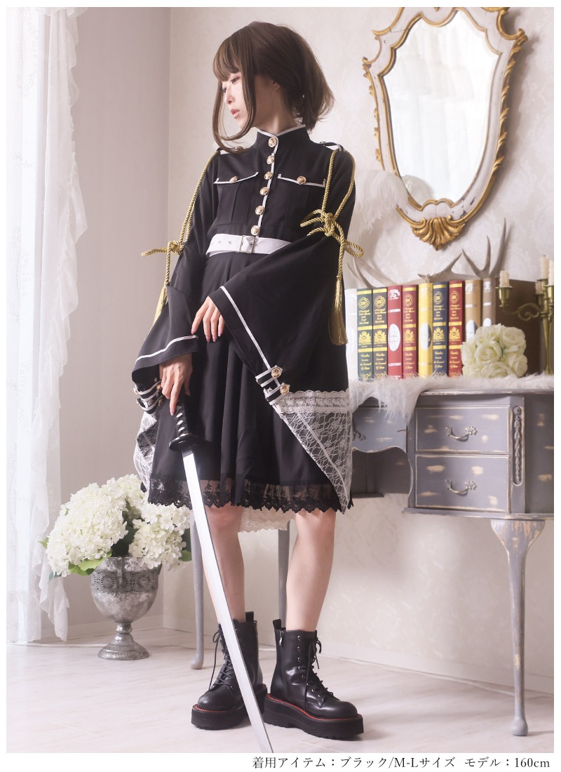 軍服風和袖のミリタリー和ンピース