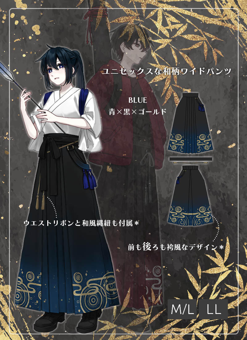 ユニセックスな和柄ワイドパンツ