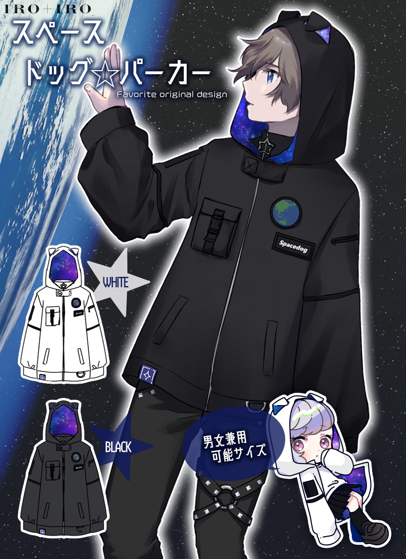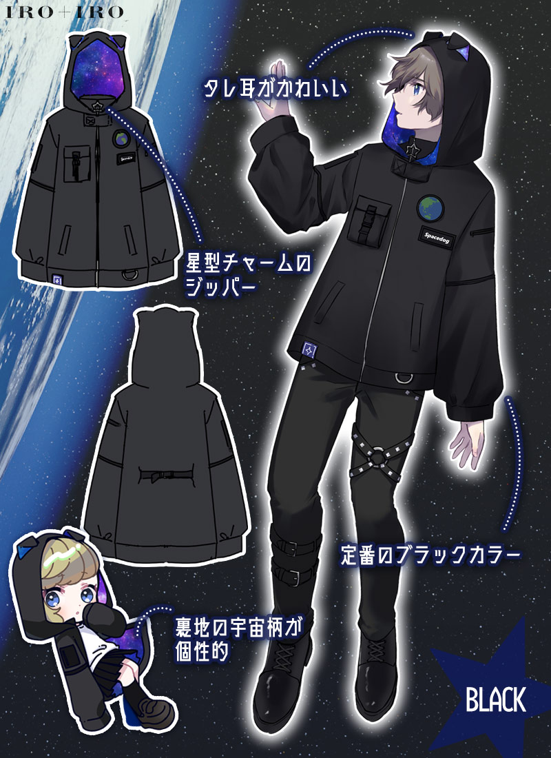 宇宙と星をイメージしたタグやジップのチャームにも星