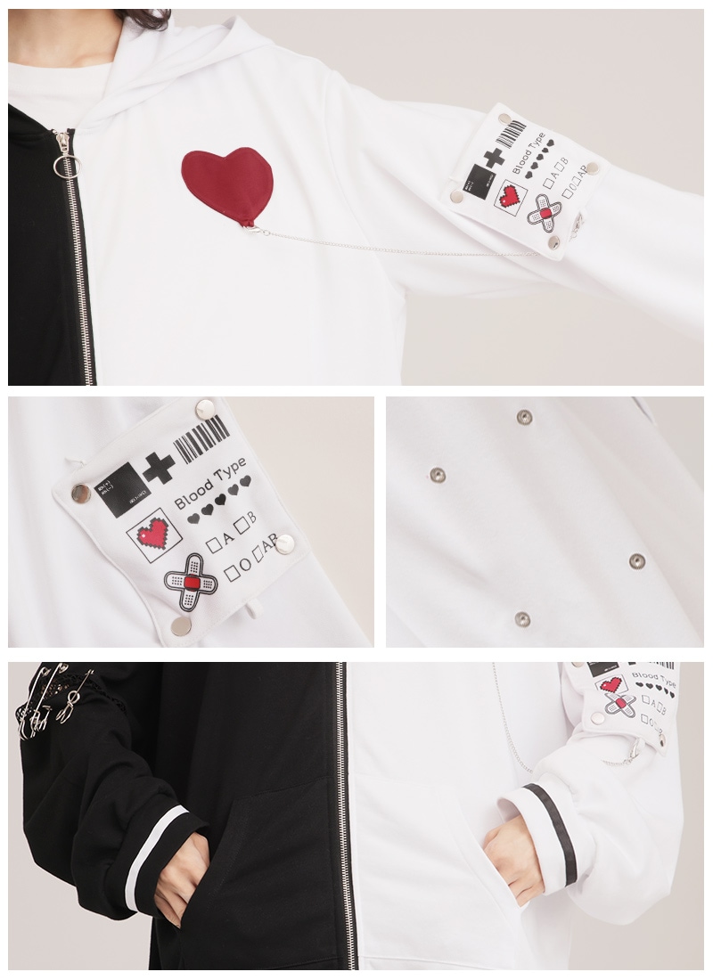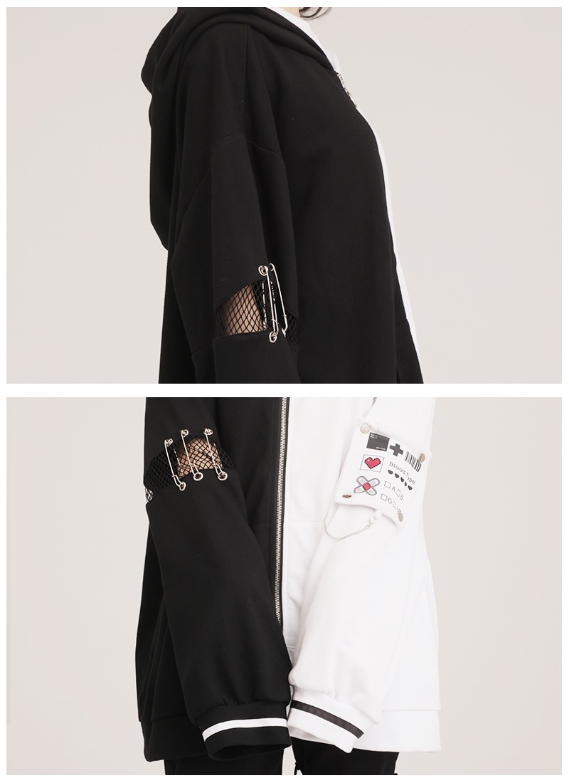 右袖は部分的にメッシュになっていて巨大安全ピンでアクセント