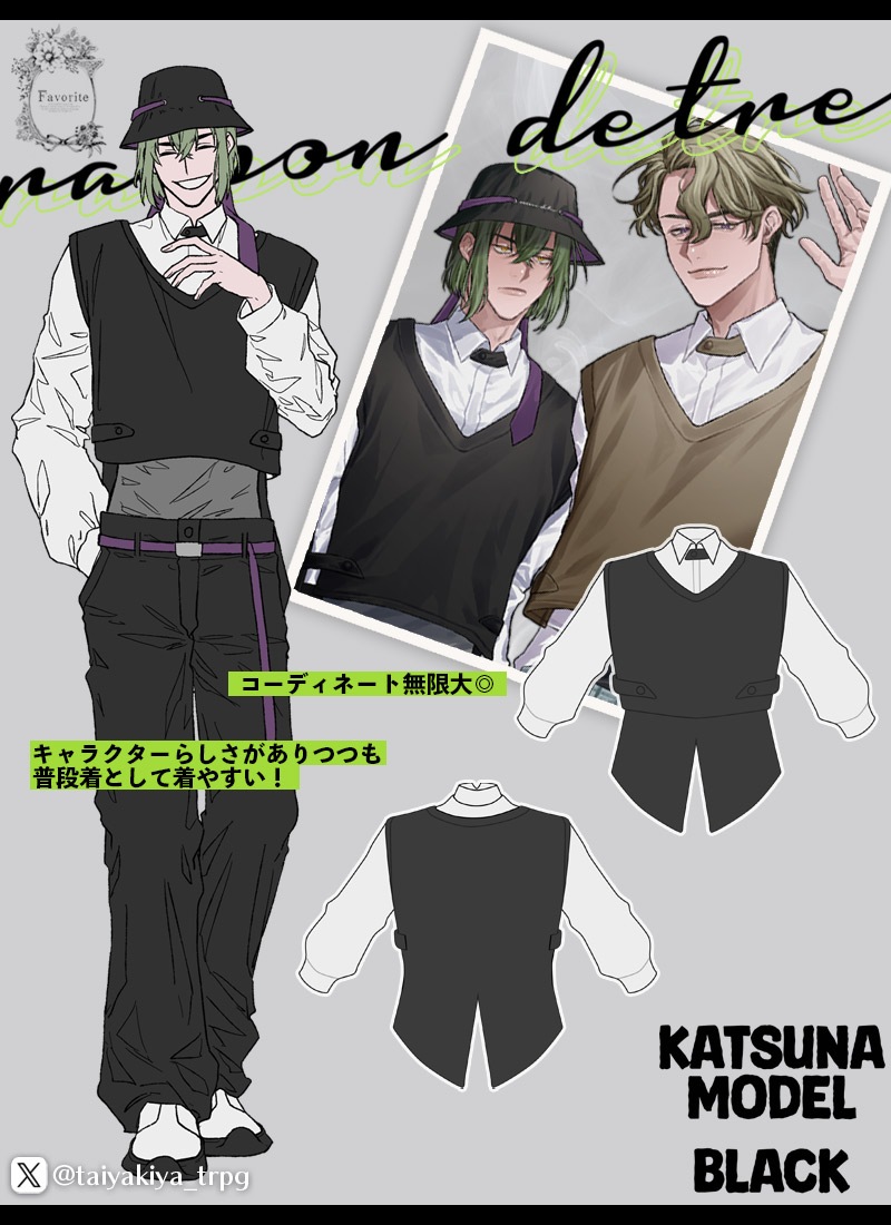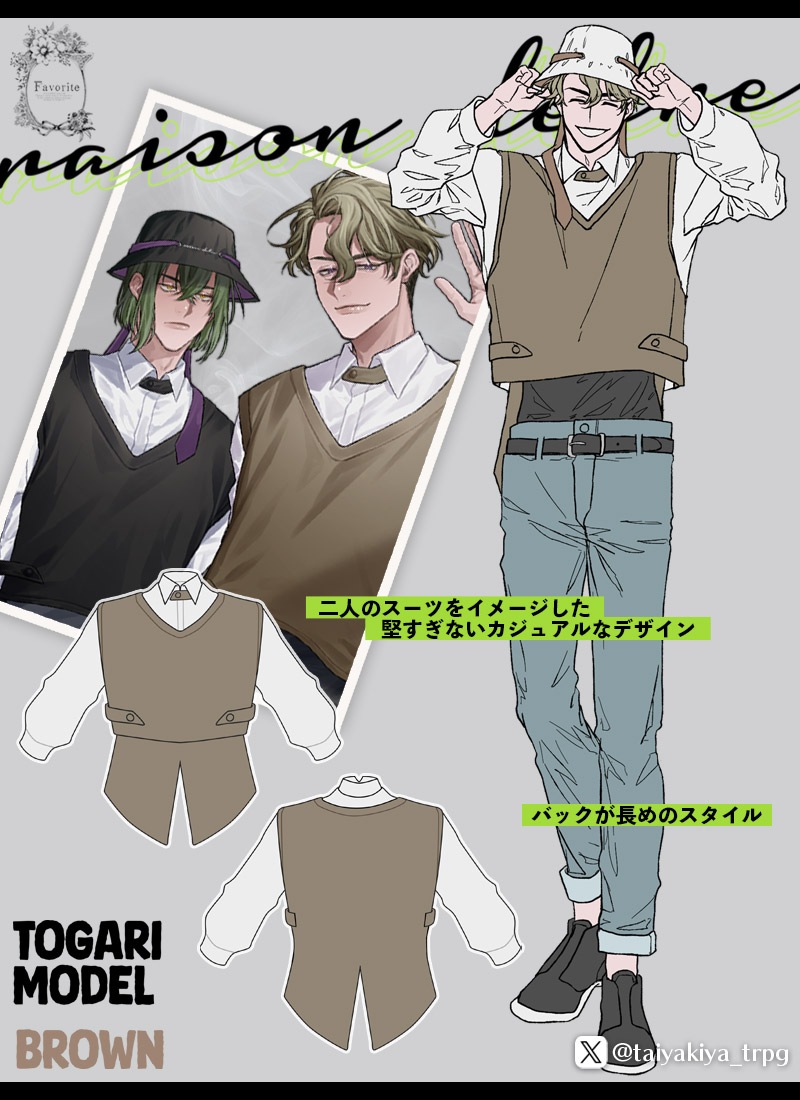 ・渡刈・葛南ら二人のスーツをイメージした硬すぎないカジュアルなデザイン