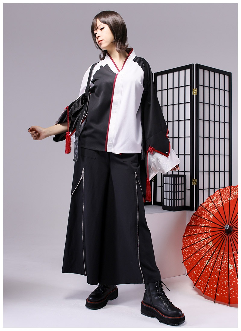 人気の和袖トップスの袖にアシンメトリーで柄が入るアイテム