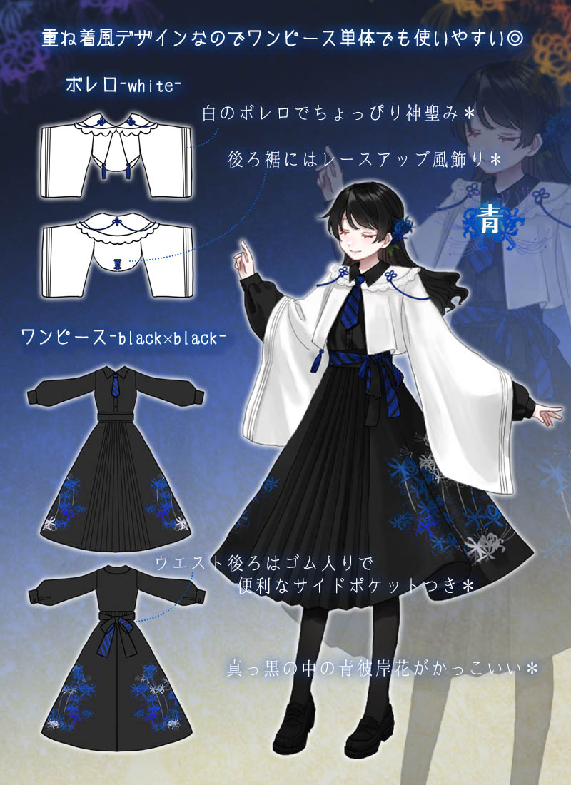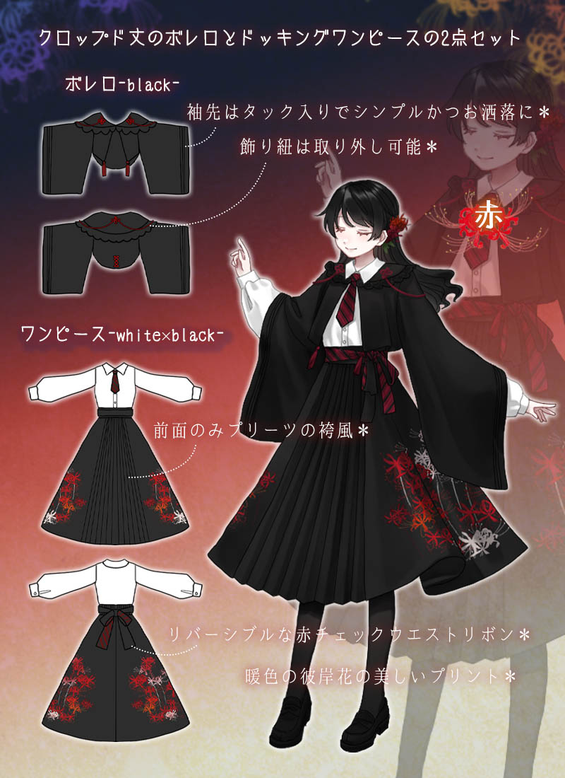 ●カラー 【ボレロ:ブラック ワンピース:ホワイト×ブラック×レッド】【ボレロ:ホワイト ワンピース:ブラック×ブルー】