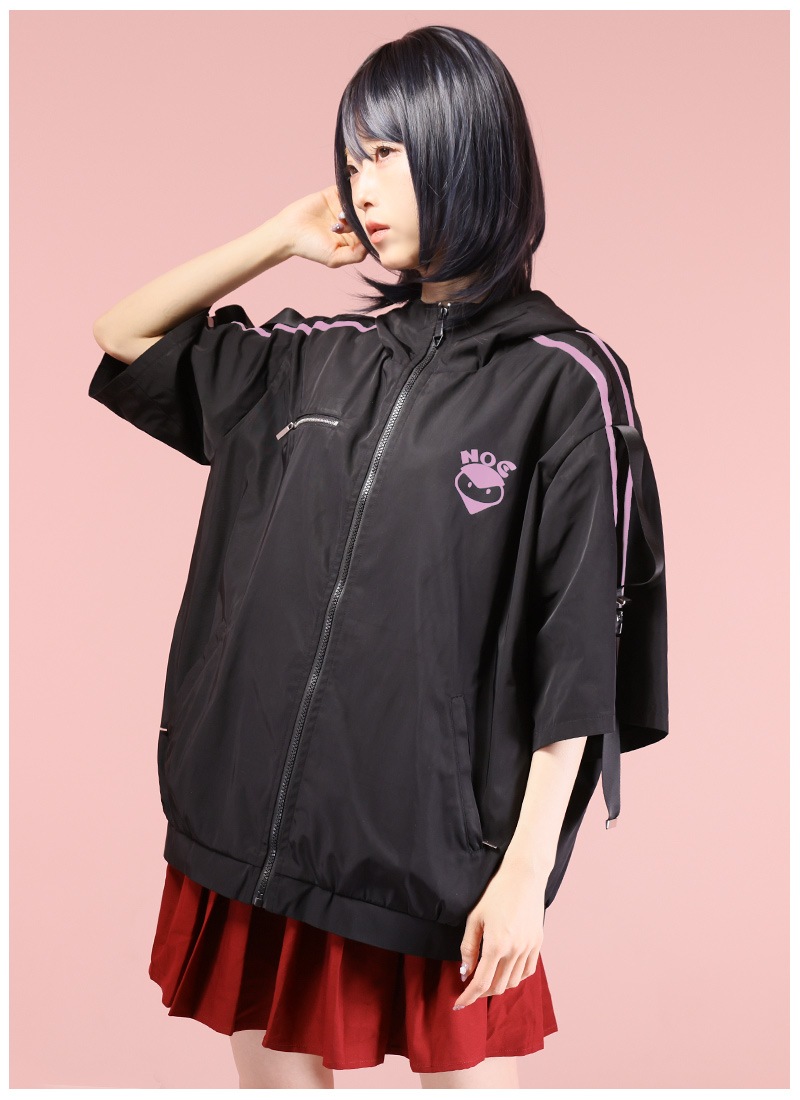 ・左胸にイメージプリント、ポケットは隠しファスナーポケット