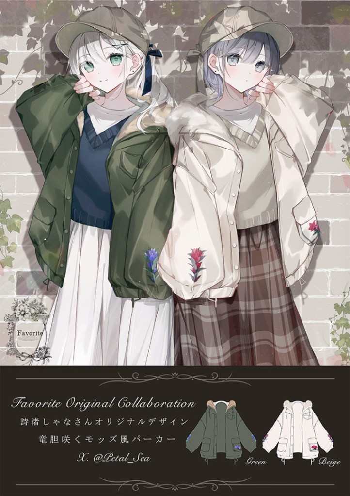 ・裾とポケットに咲く竜胆のプリント