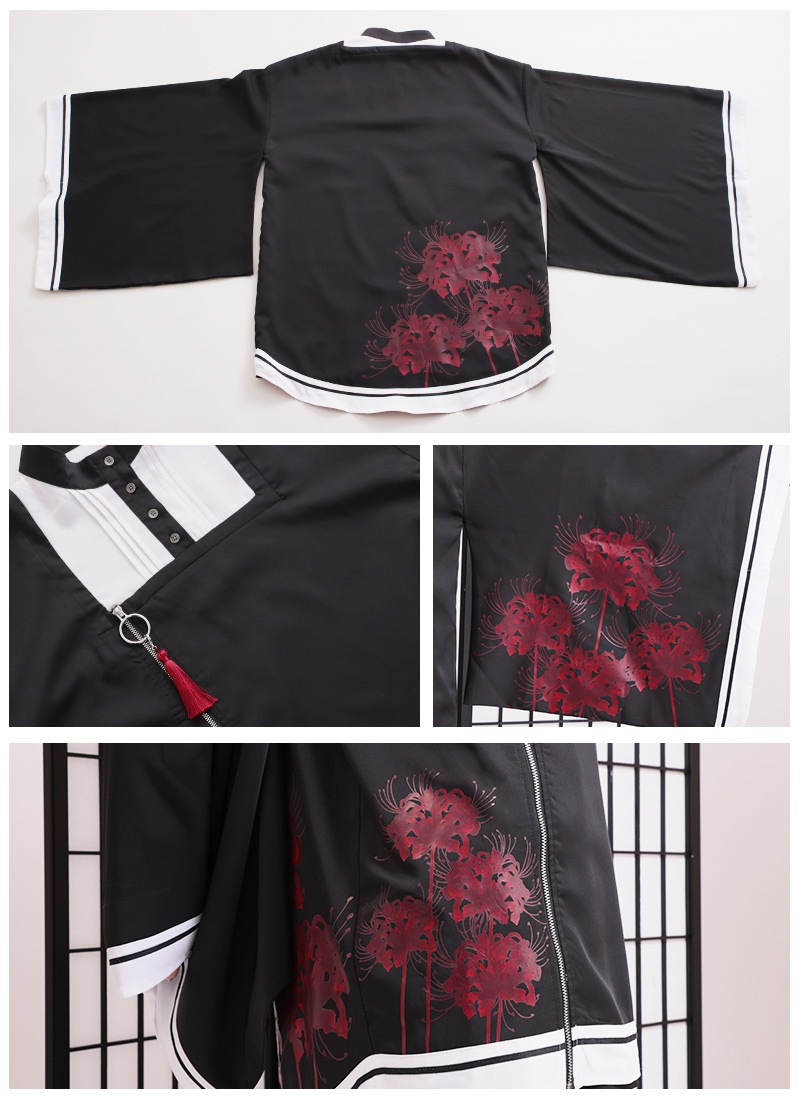 袖や裾に咲く大きな彼岸花が存在感抜群