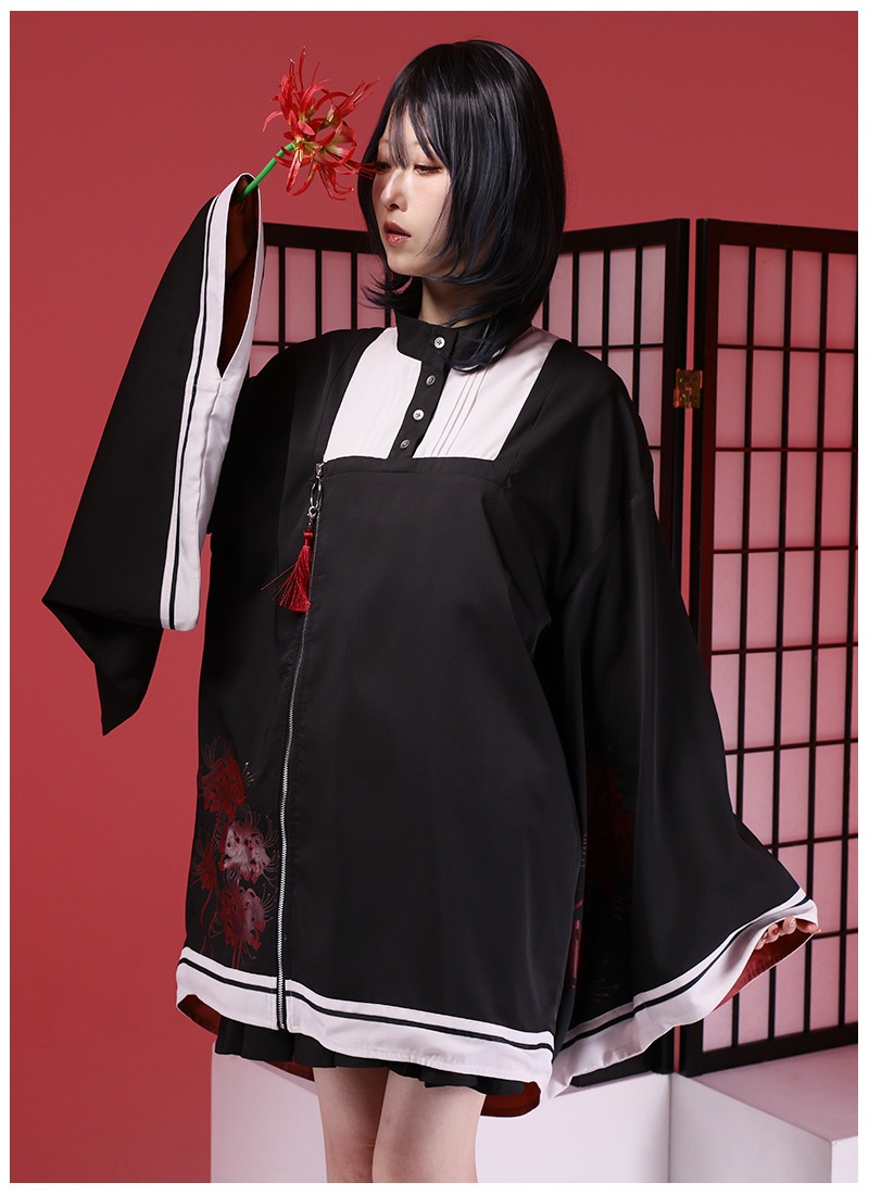 道行コート風 彼岸花の和袖ドッキングシャツ