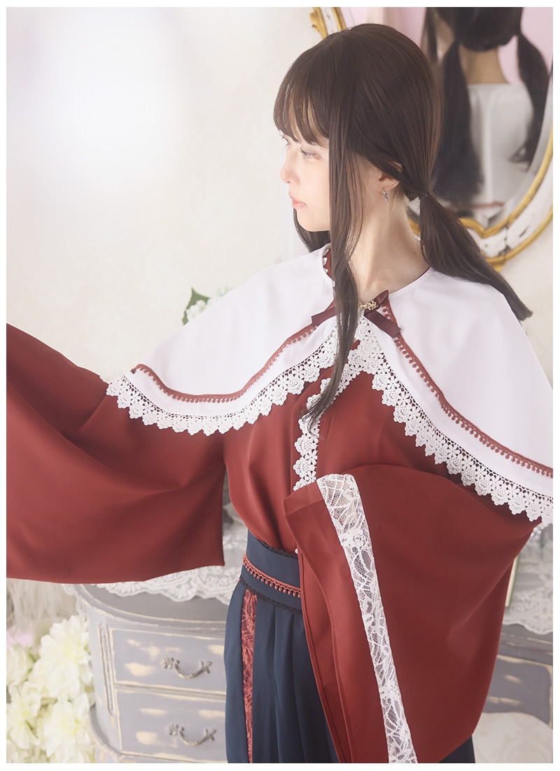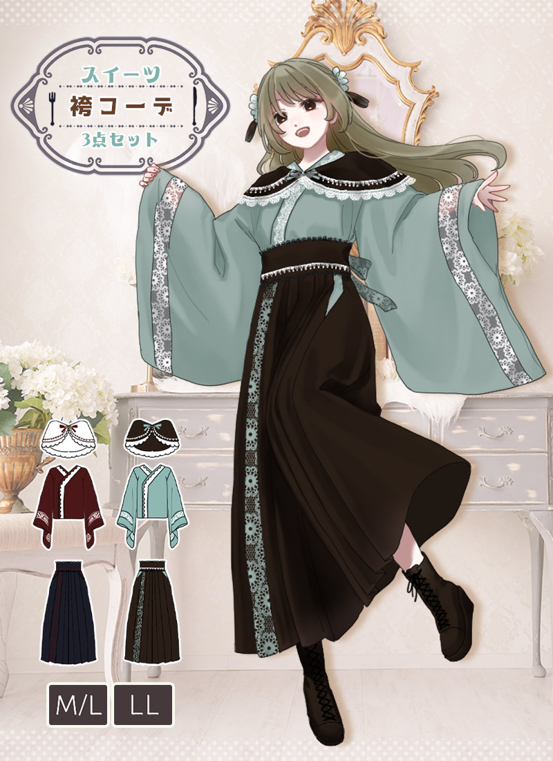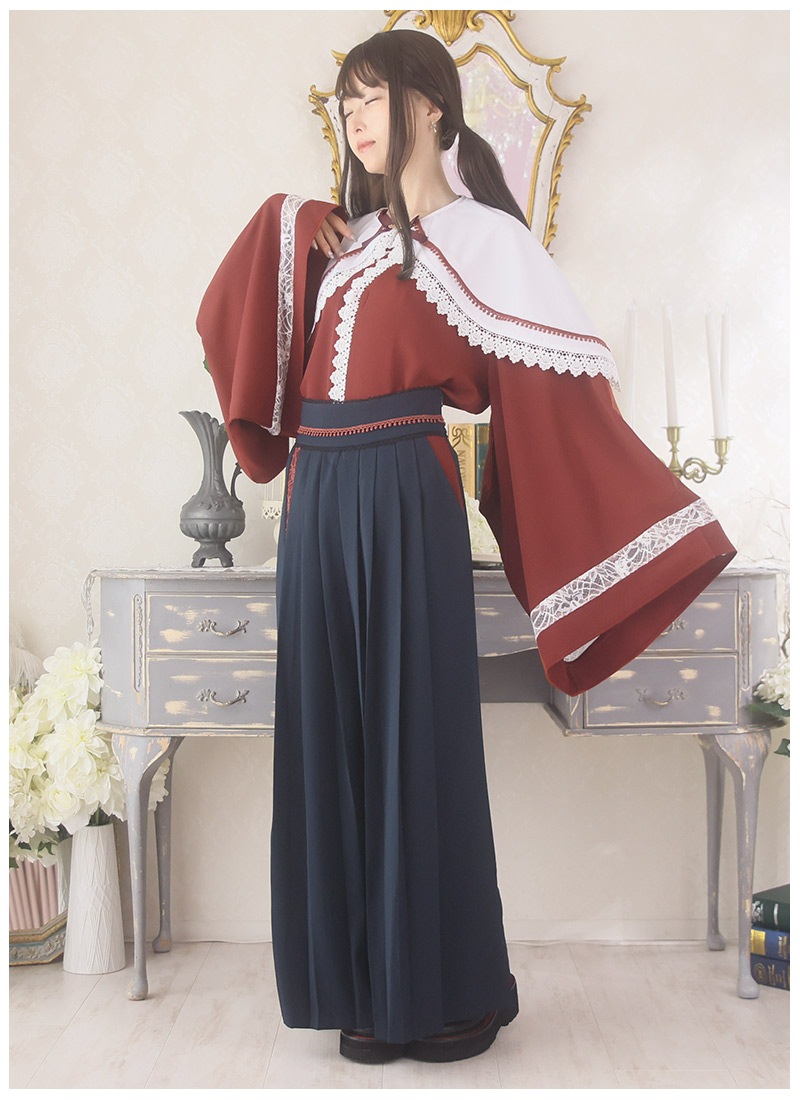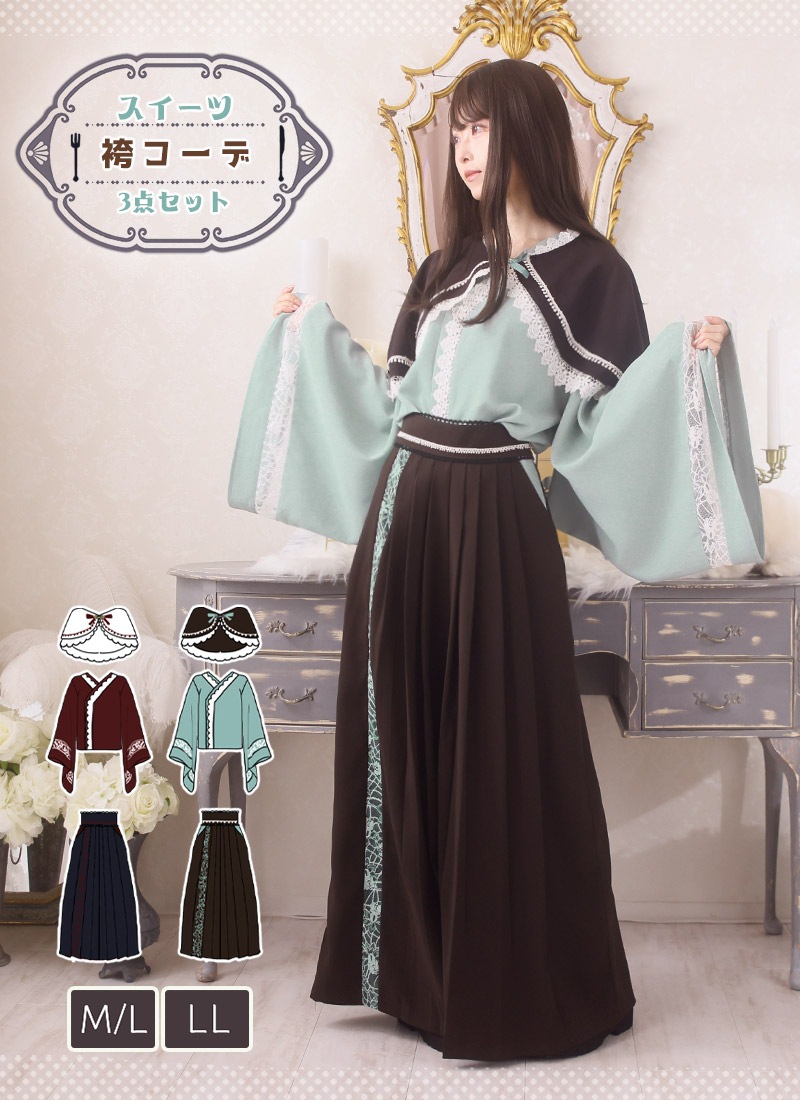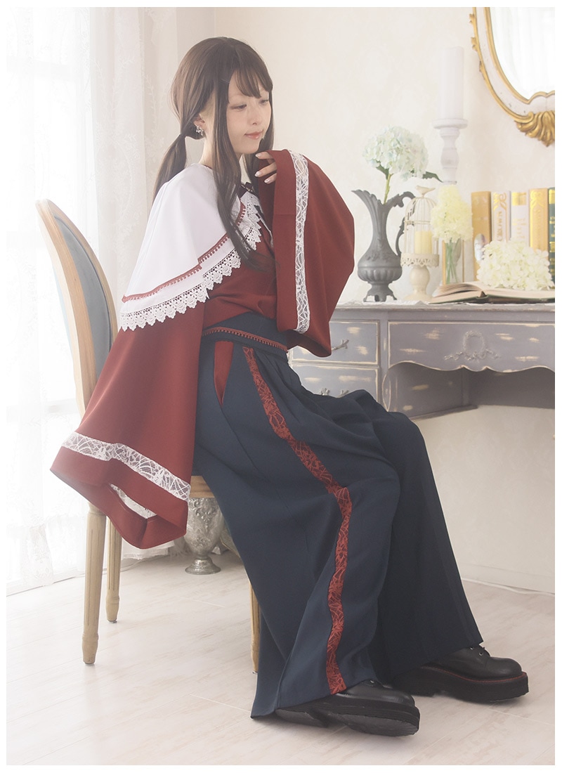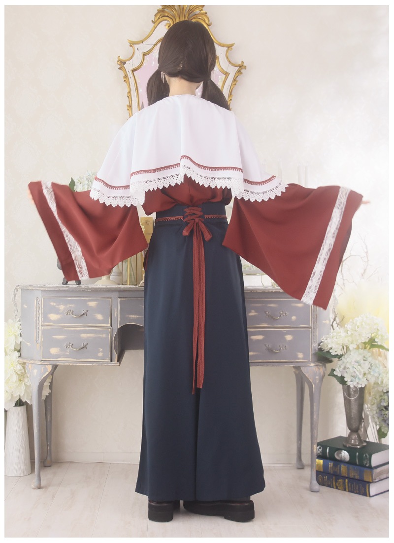ケープ、和袖シャツ、袴風パンツの3点セット