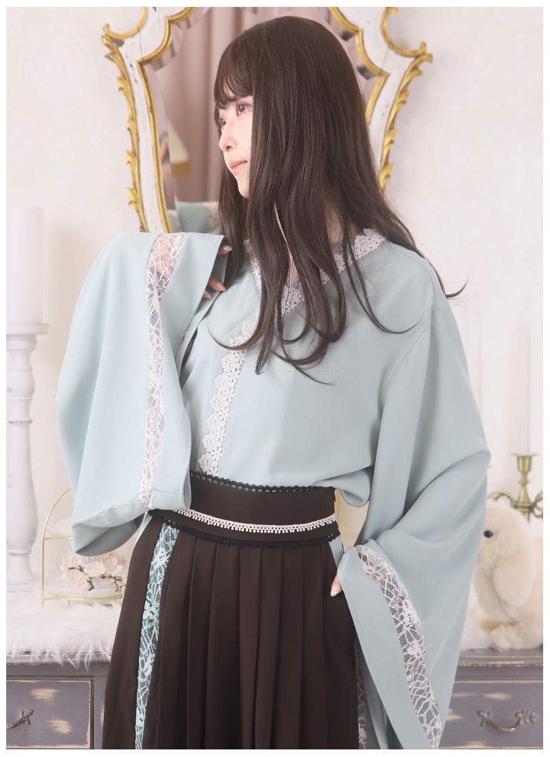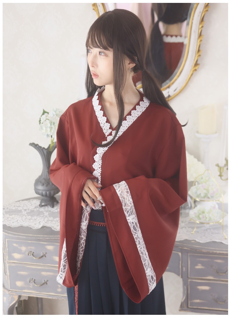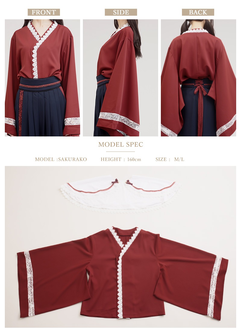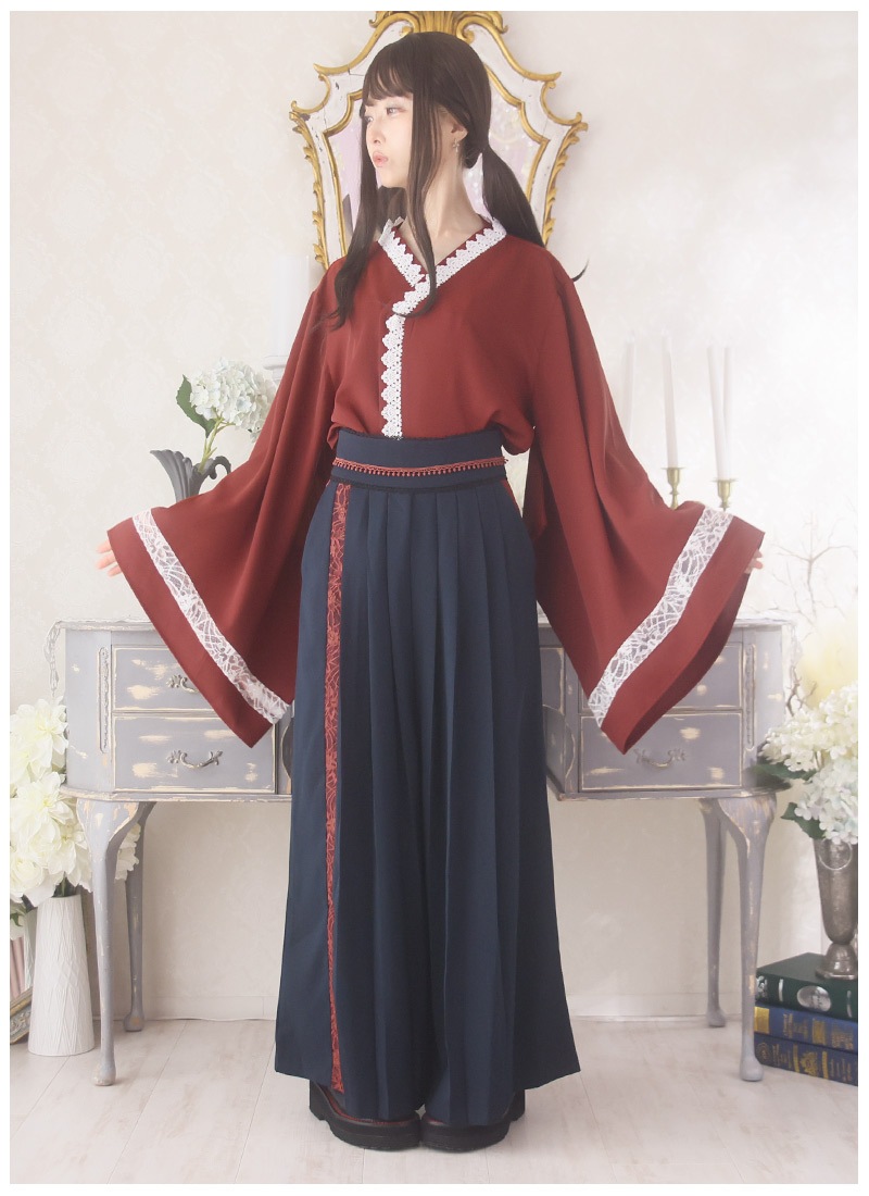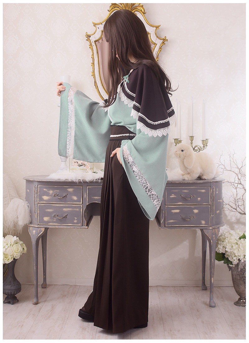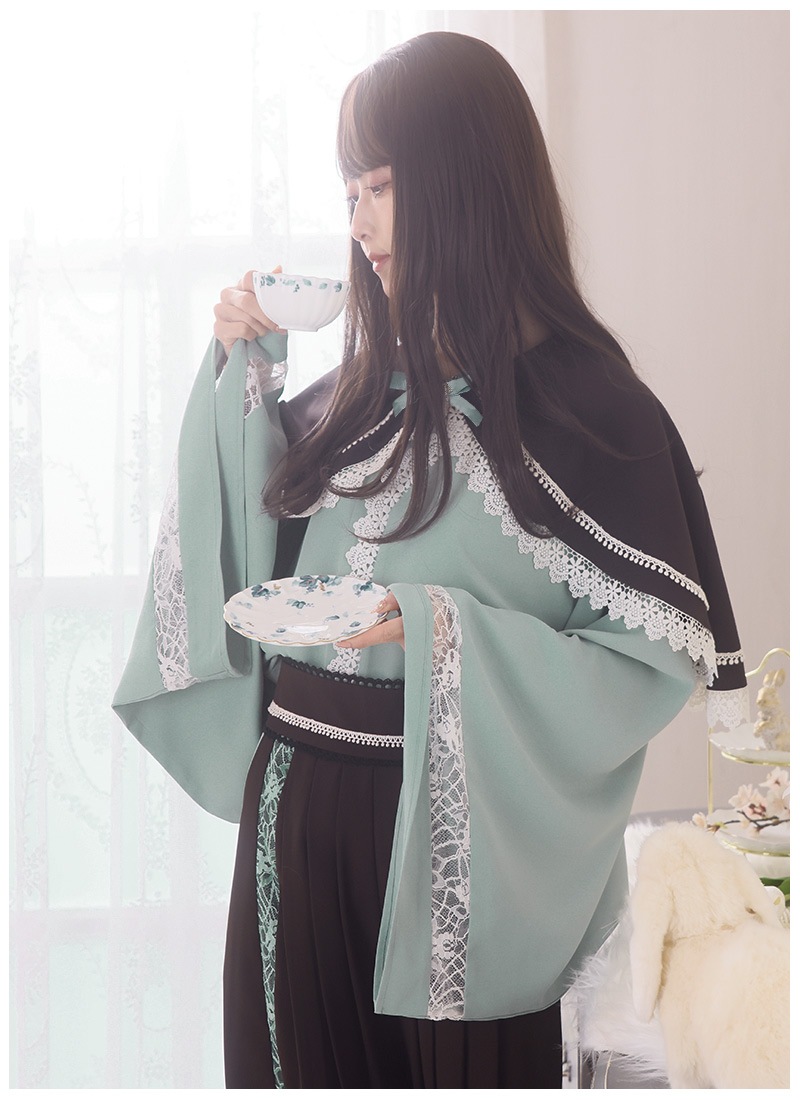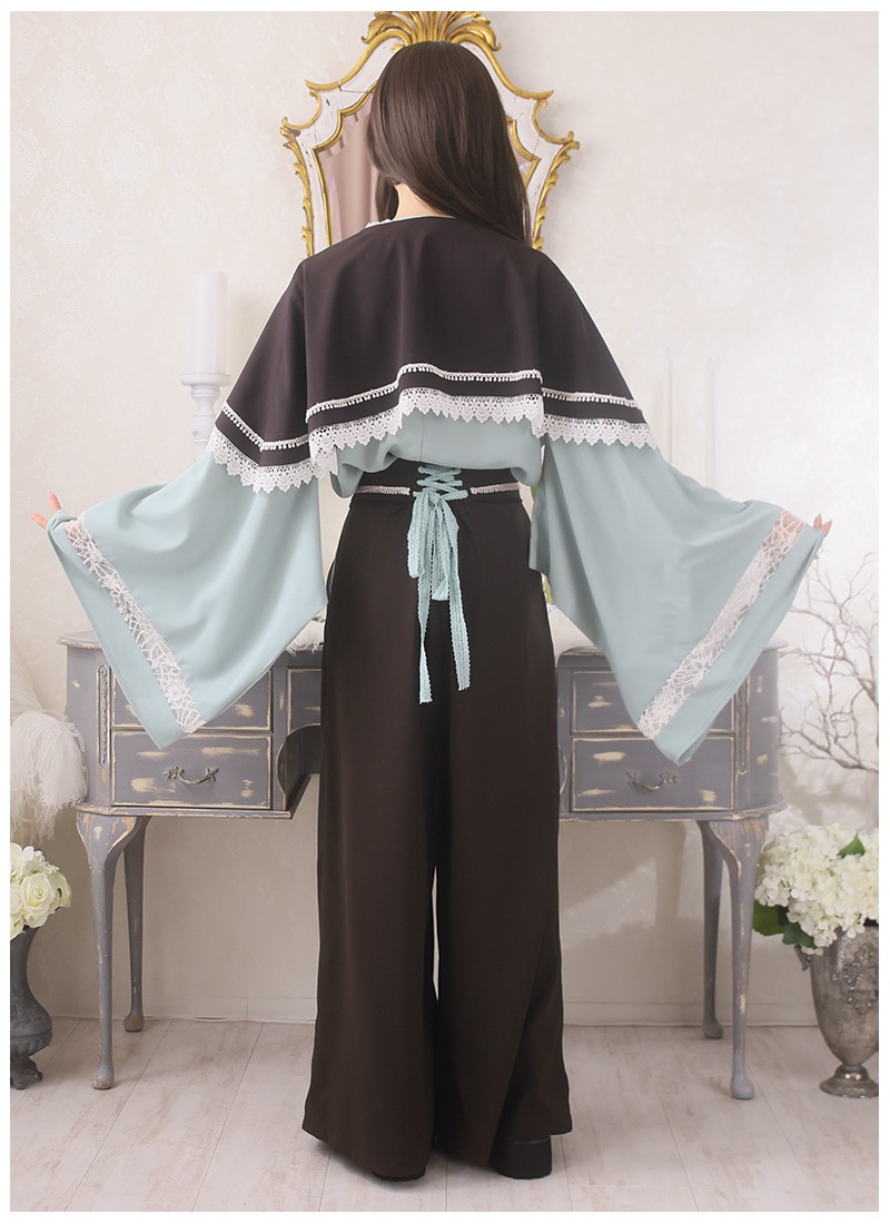 ケープ、和袖シャツ、袴風パンツの3点セット