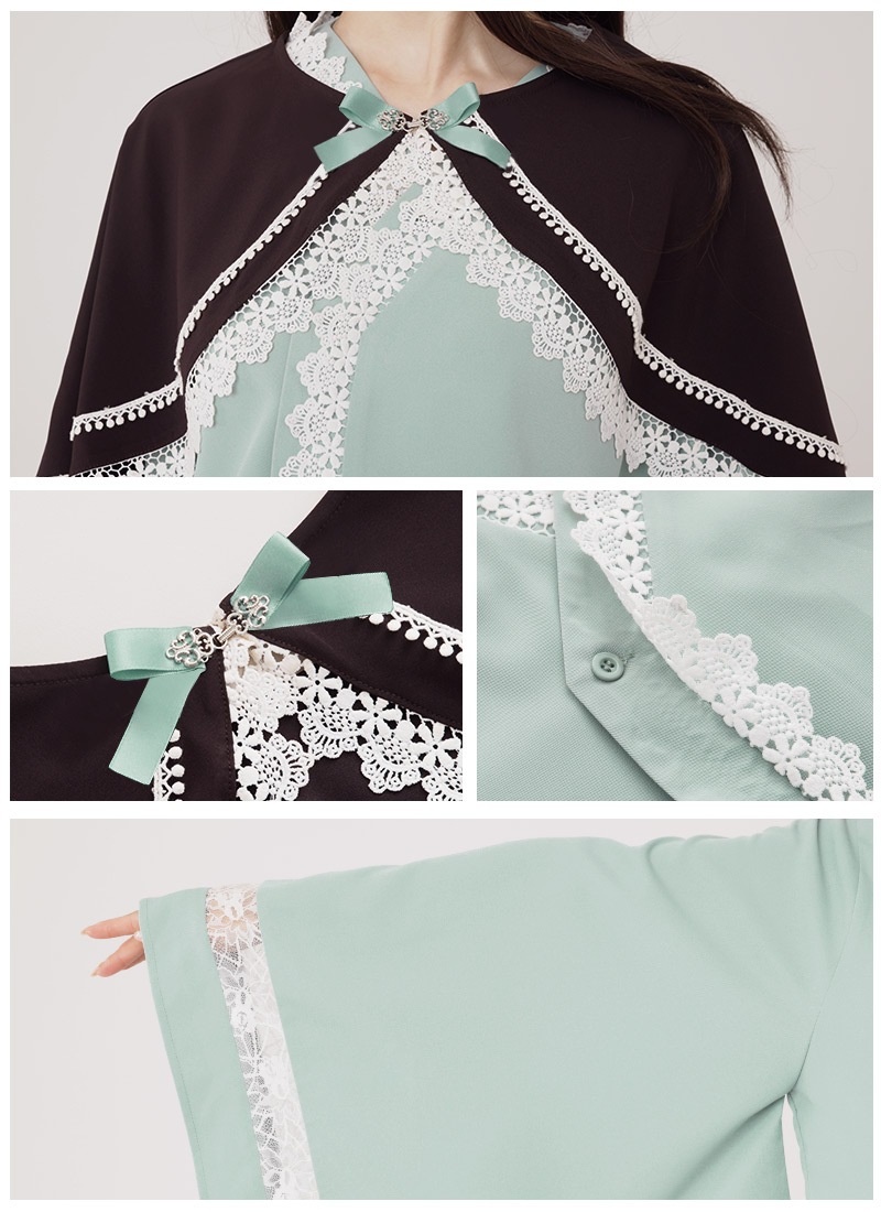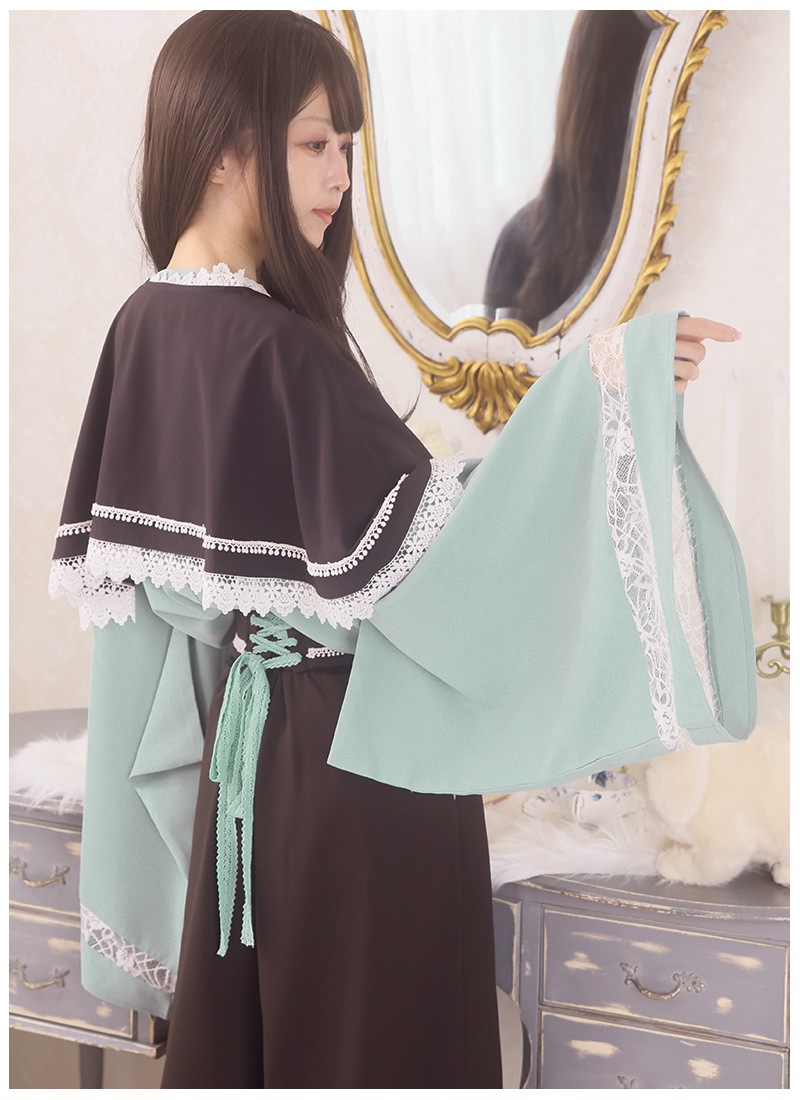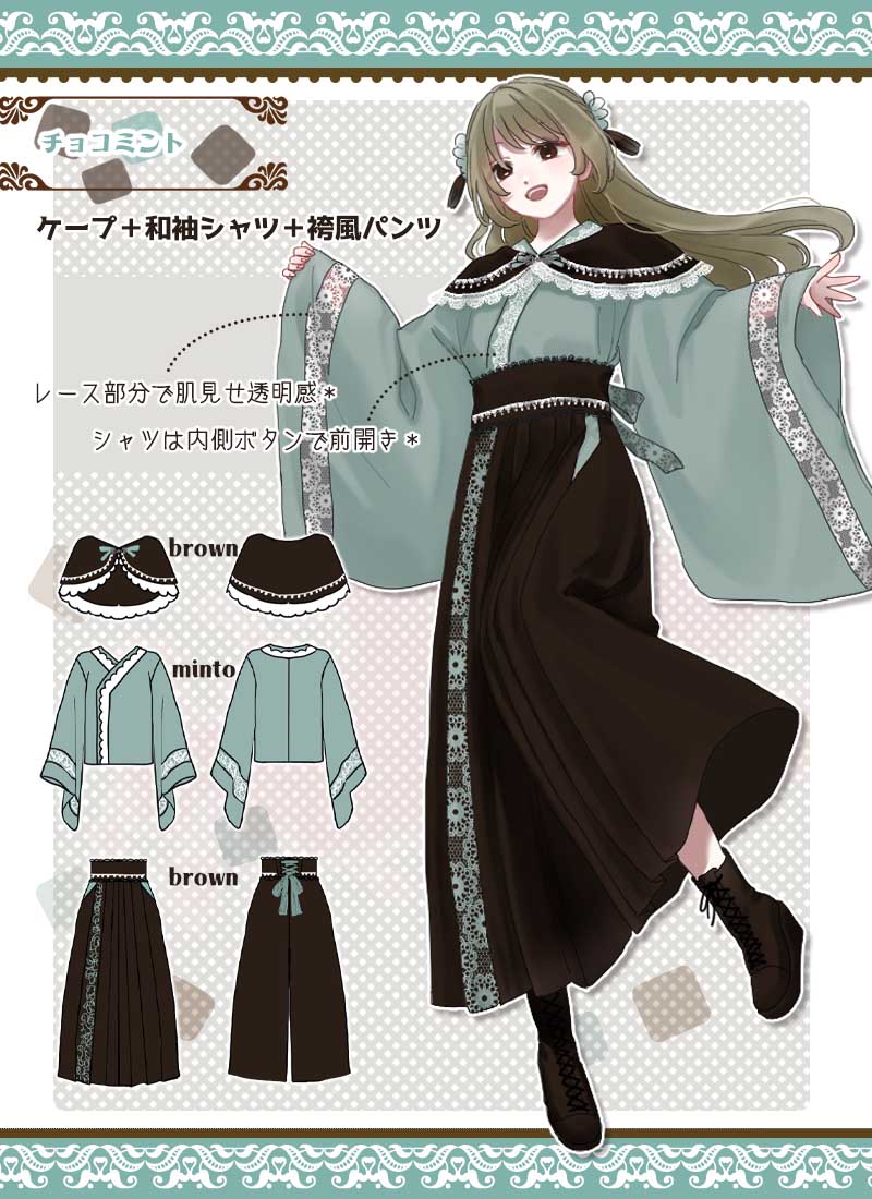 【チョコミント】ケープ:ブラウン × トップス:ミント × ボトムス:ブラウン