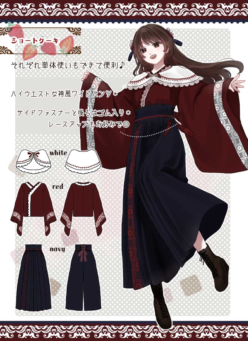 ●カラー 【ショートケーキ】ケープ:ホワイト × トップス:レッド × ボトムス:ネイビー