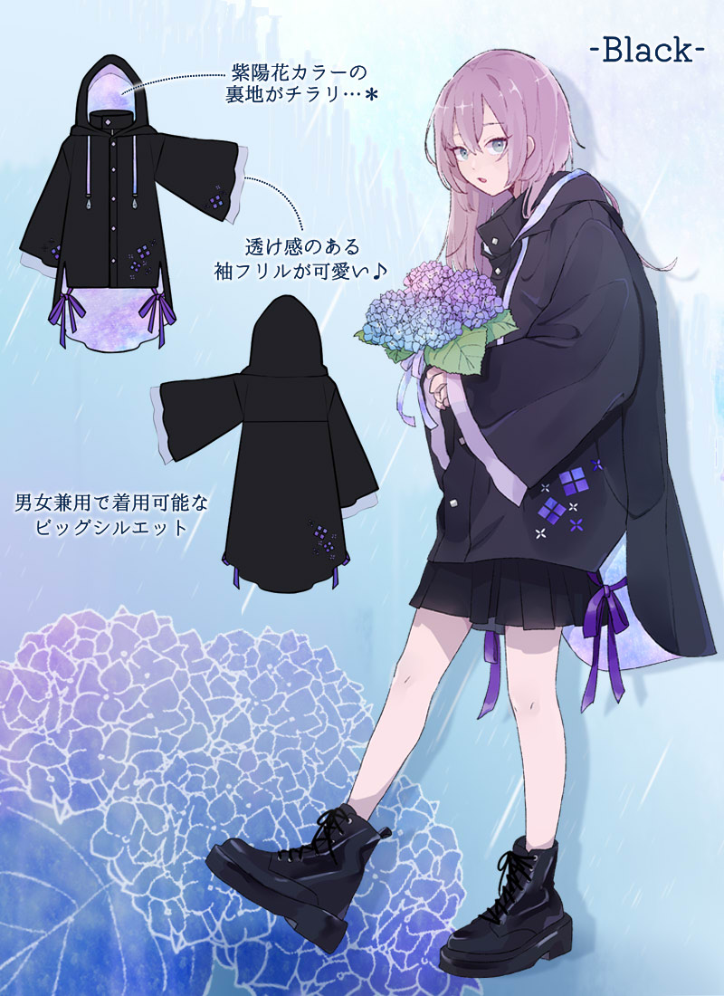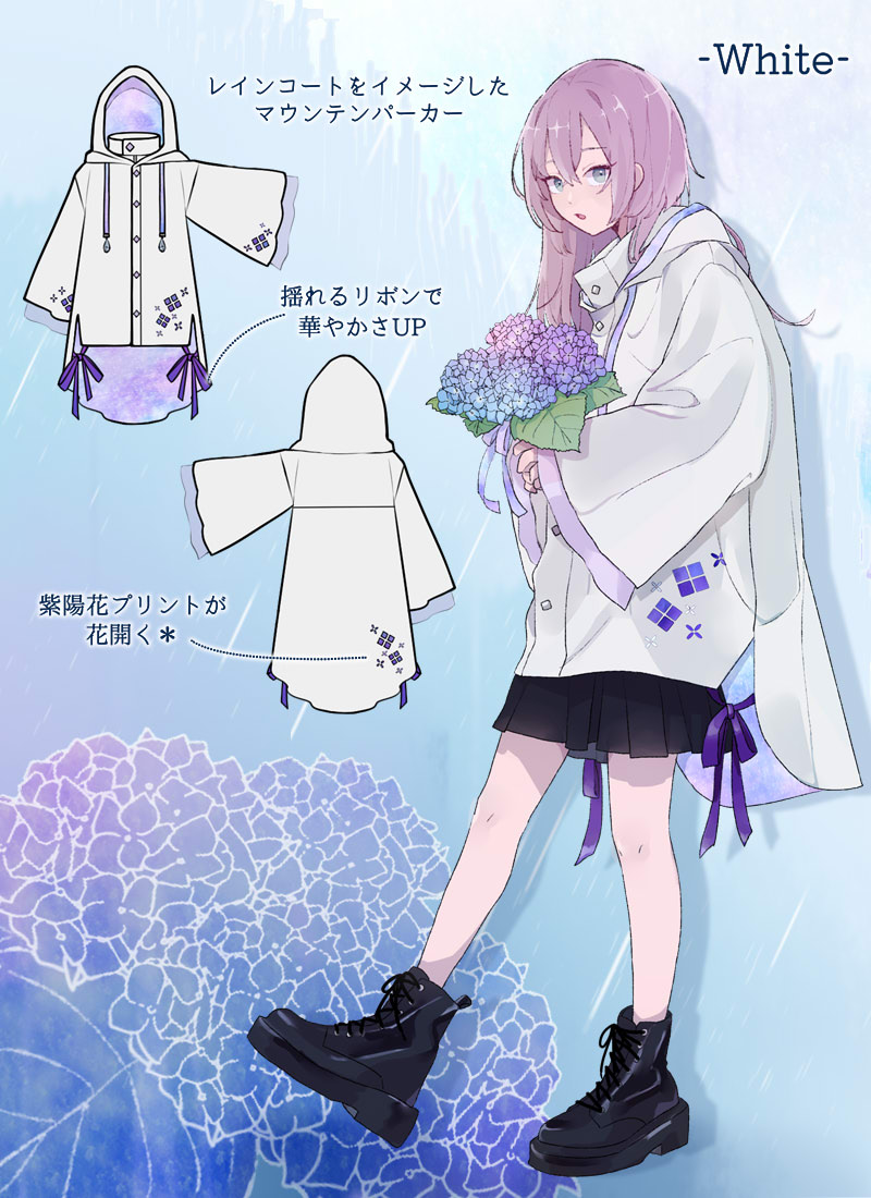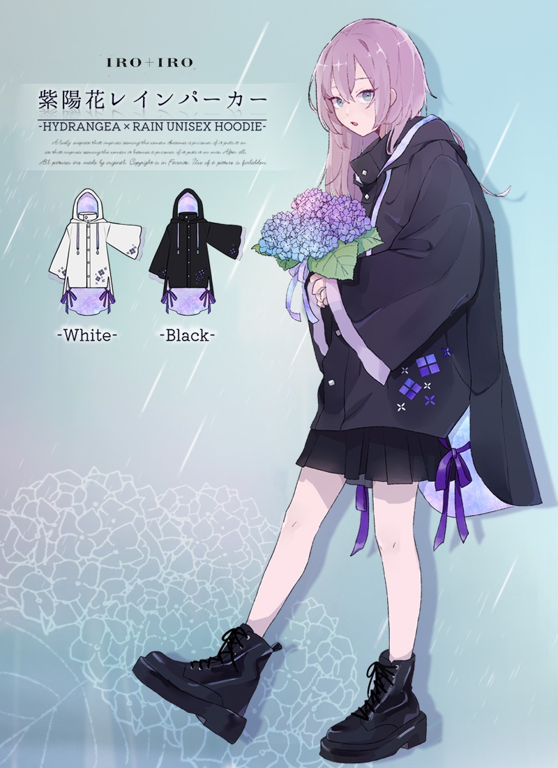 梅雨時期のお出かけがちょっと楽しくなるような、梅雨と紫陽花をイメージしたマウンテンパーカー