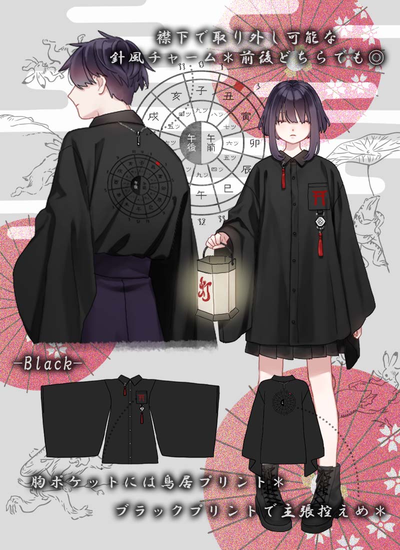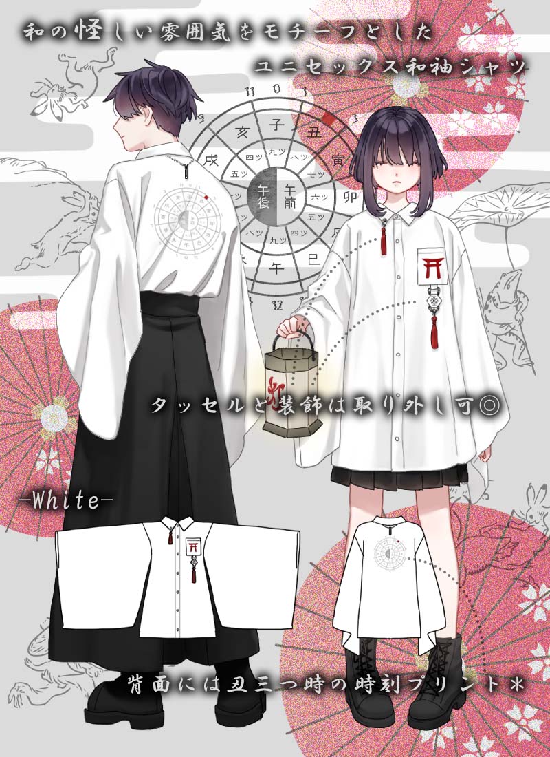 胸元には怪しげな鳥居プリントとタッセル装飾