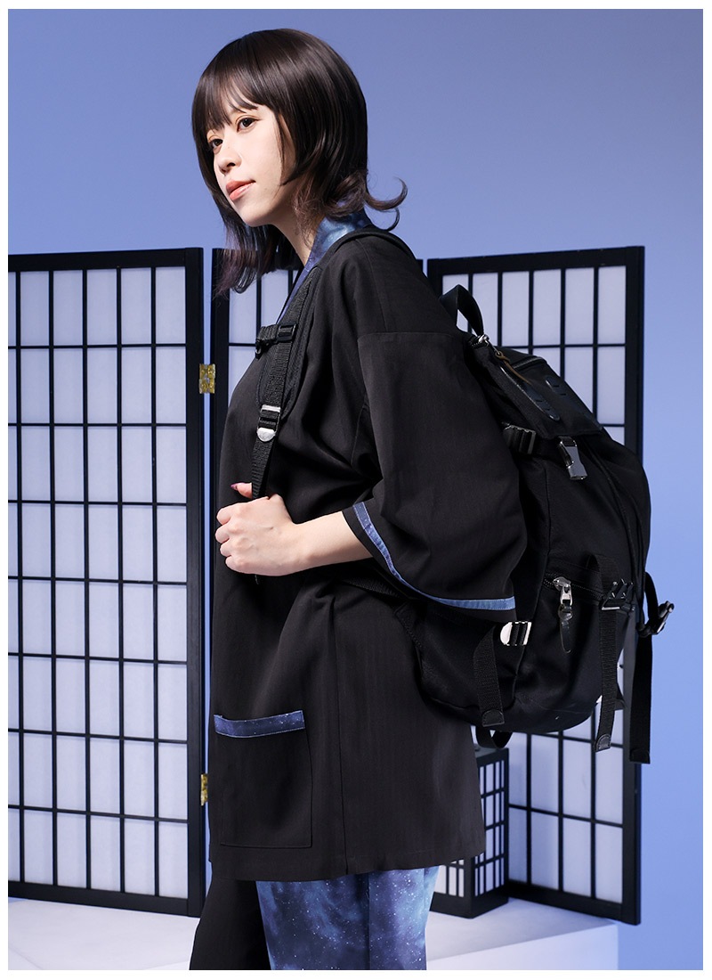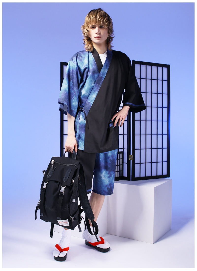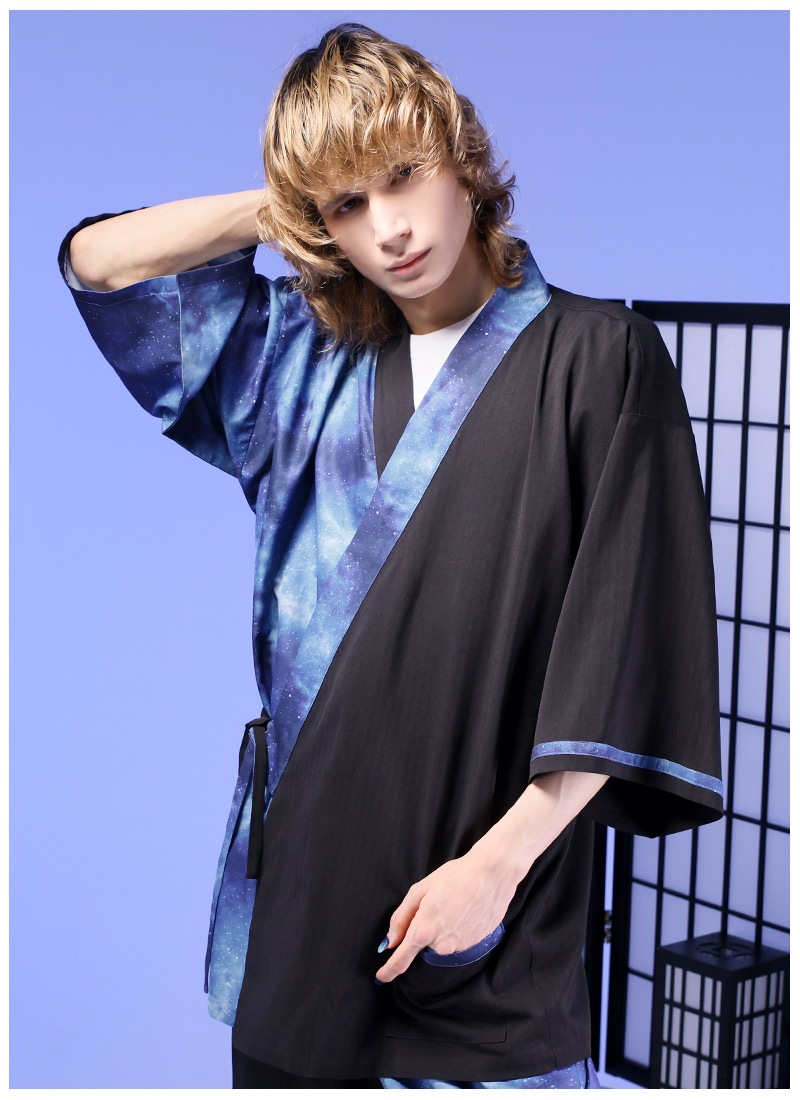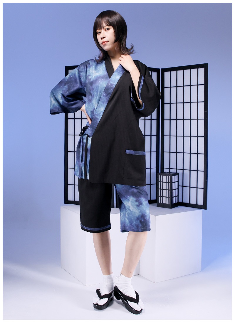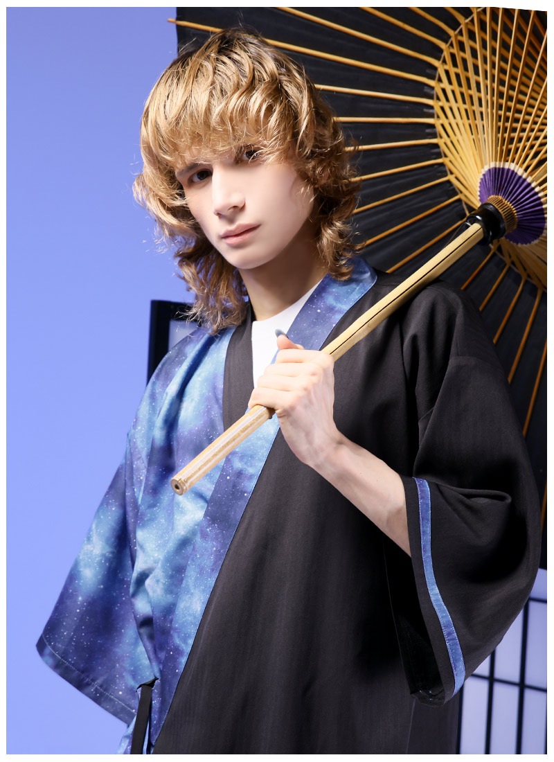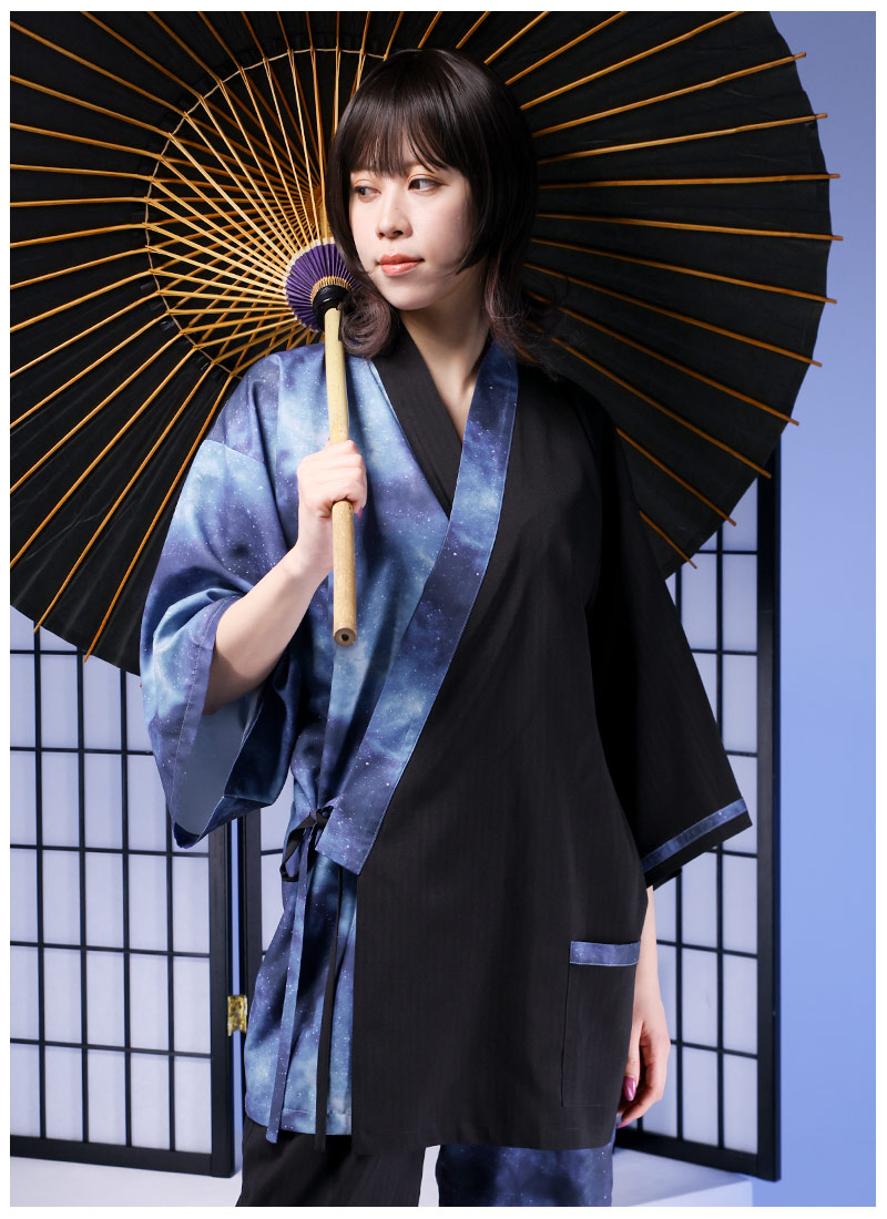 アシンメトリーに入った宇宙柄が存在感抜群な甚平セット