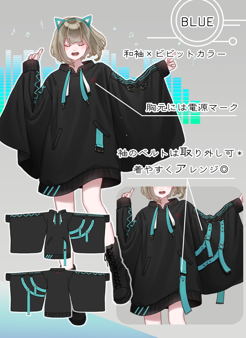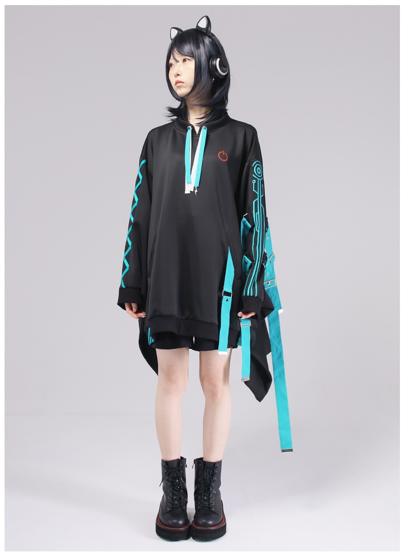 稲妻チャームや電源ボタンプリントなど、細かなところまでデザイン性の高い一着