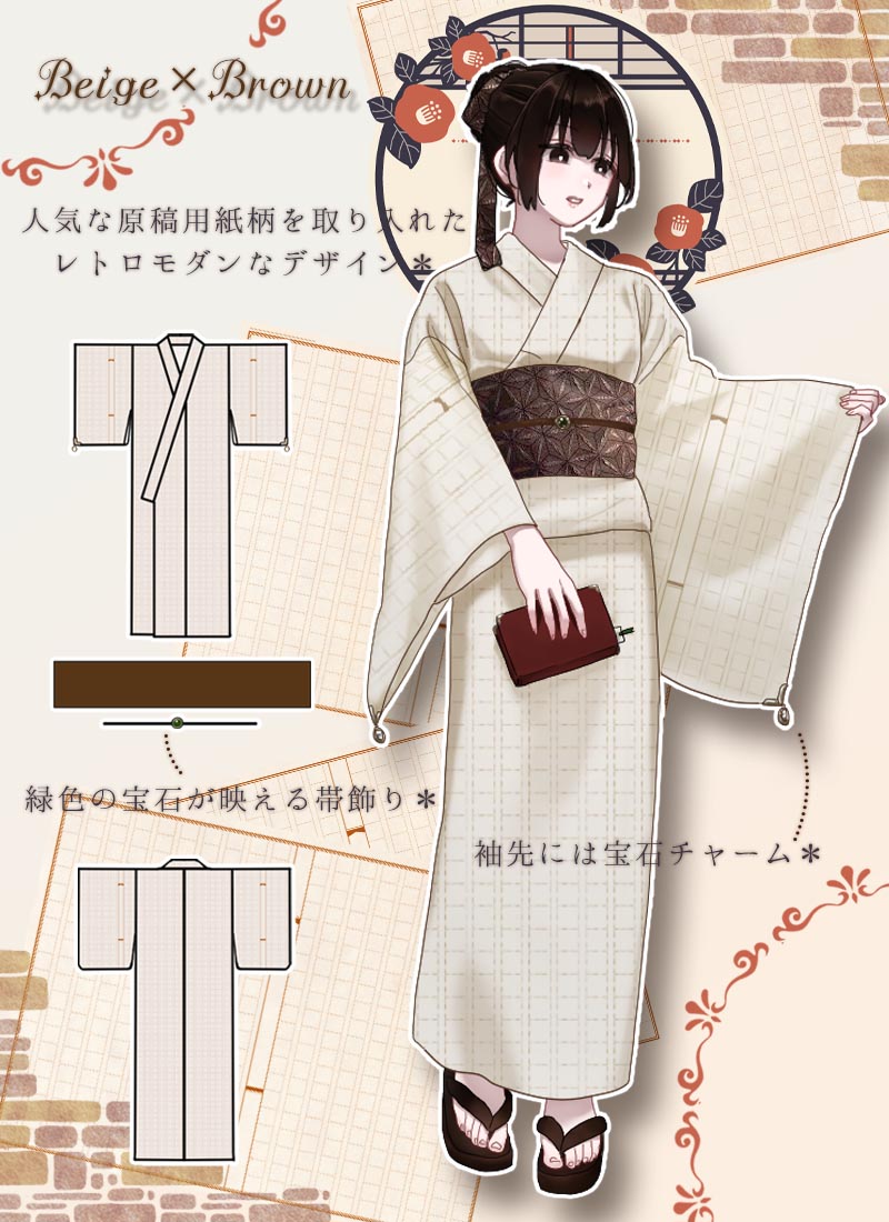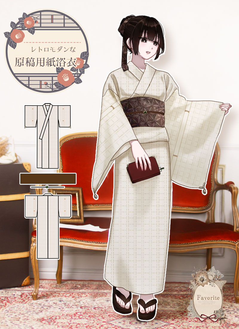 Favoriteで人気の原稿用紙の総柄を使った浴衣